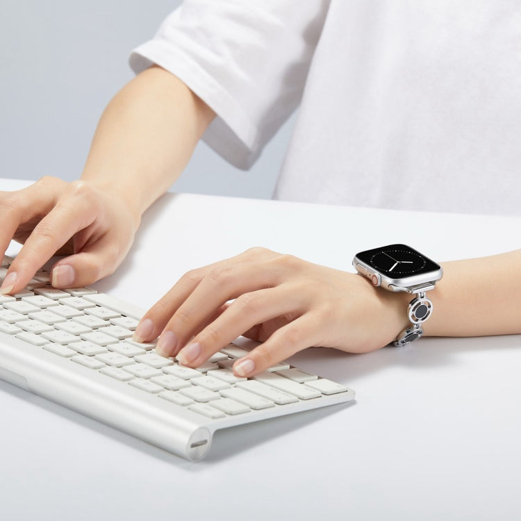 Hvis du overvejer at opgradere dit smartwatch, er dette armbånd det perfekte valg. Det er fremstillet af højkvalitets zinklegeme, som sikrer holdbarhed og komfort, selv når du bærer det hele dagen. Armbåndet er omhyggeligt poleret og modstandsdygtigt over for sved, hvilket gør det ideelt til både daglig brug og specielle lejligheder. Den stilfulde og elegante rhinestone dekor tilføjer et personligt præg til dit ur og gør dig til centrum for opmærksomhed uanset, hvor du befinder dig. Uanset om du skal til et formelt arrangement eller bare ønsker at opfriske dit look, er dette armbånd den ideelle erstatning for dit gamle eller beskadigede armbånd. Det passer til en håndledsomkreds på 130mm-195mm, hvilket sikrer en perfekt pasform for de fleste brugere. Gå ikke glip af muligheden for at forvandle dit smartwatch med dette unikke armbånd!