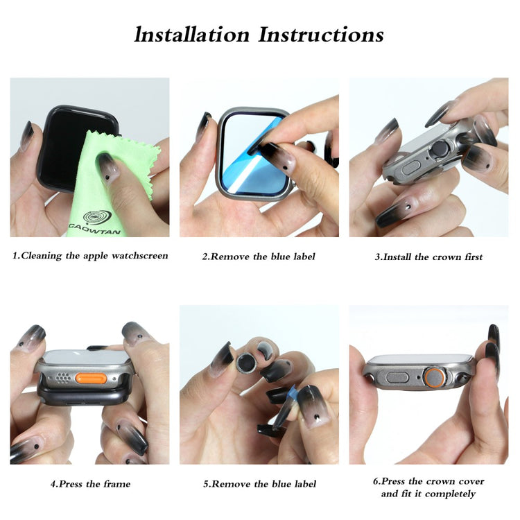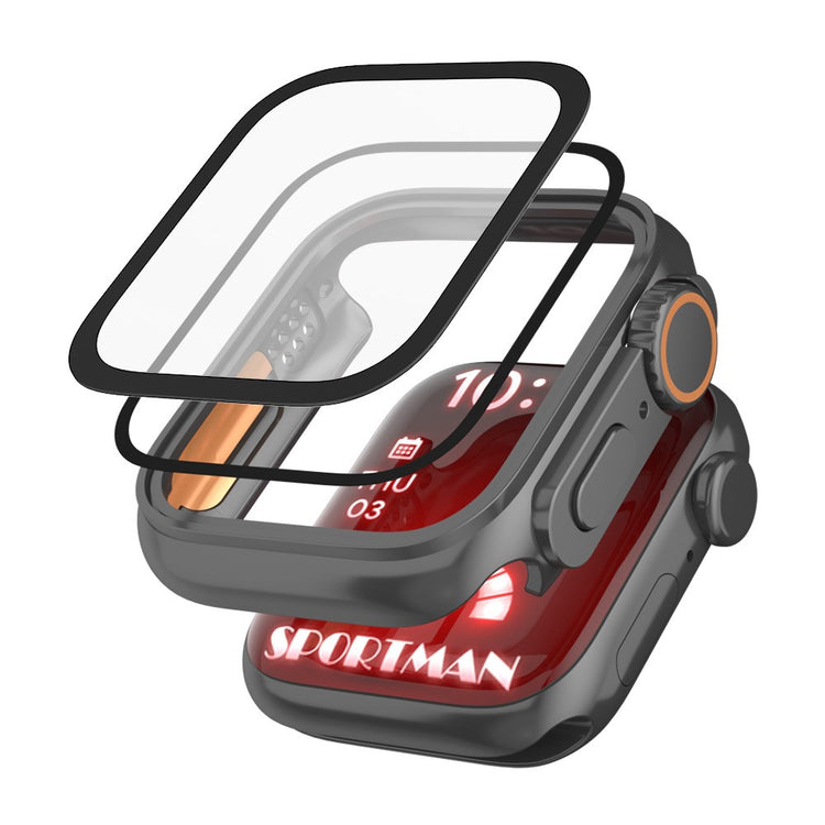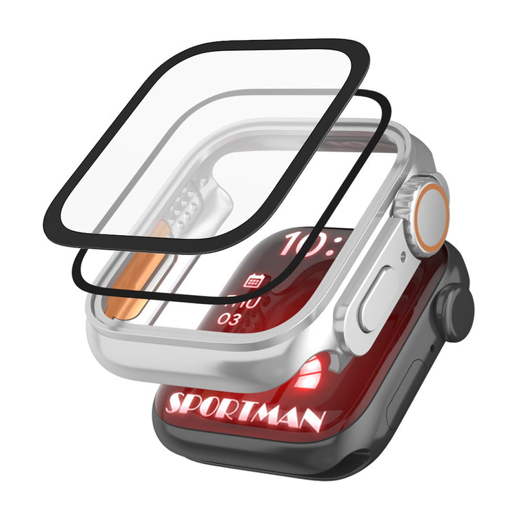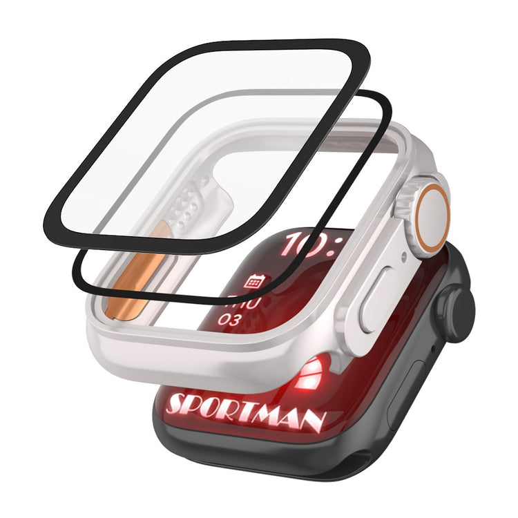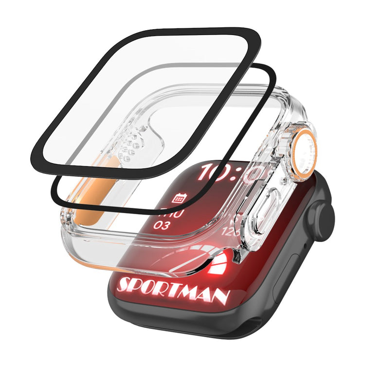 Det hårde plastcover er indbygget med en skærmbeskytter af hærdet glas, der dækker både skærmen og kanterne og beskytter dit ur 360 grader mod ridser, stød og utilsigtede tab.