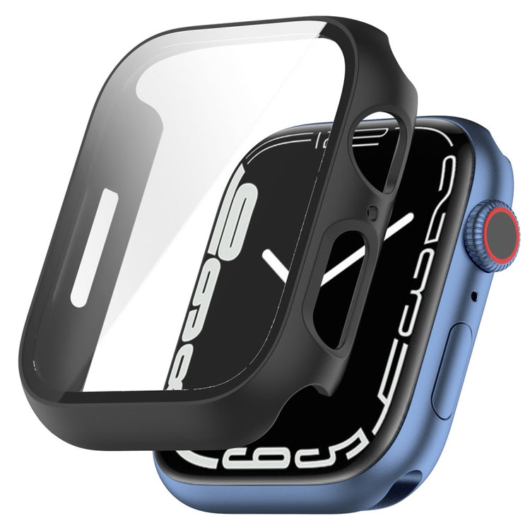 Dette cover er designet til Apple Watch Series 9/8/7 41mm og giver din smartwatch optimal beskyttelse. Coveret er lavet af hård plast og har en indbygget skærmbeskytter af hærdet glas, der dækker både skærmen og kanterne på dit ur. Den 360-graders beskyttelse beskytter dit ur mod ridser, stød og utilsigtede fald