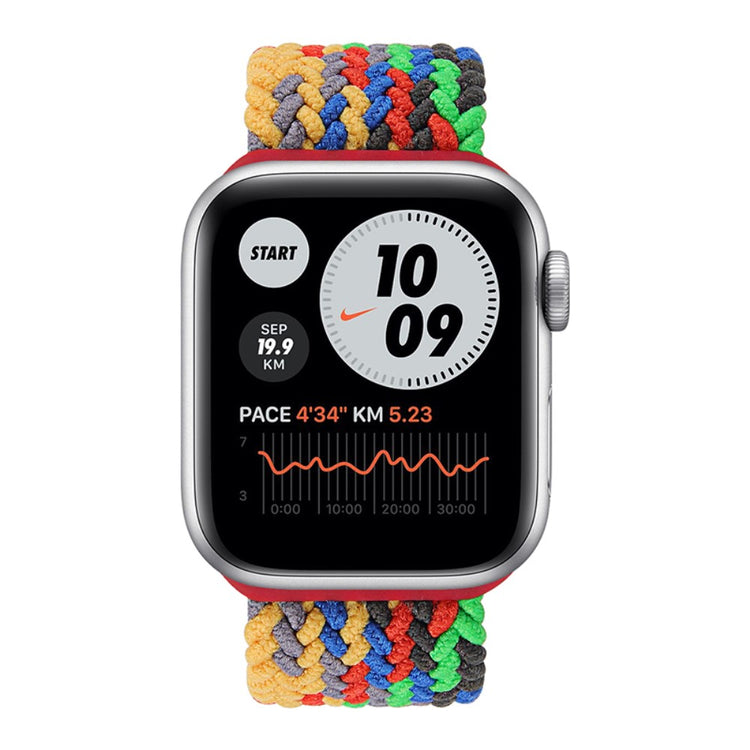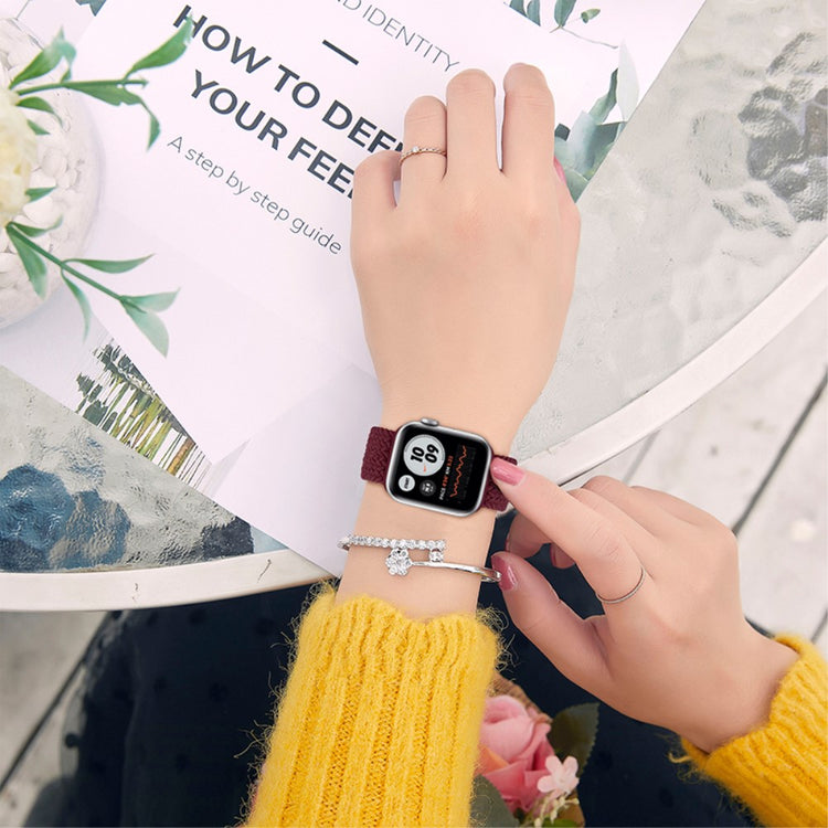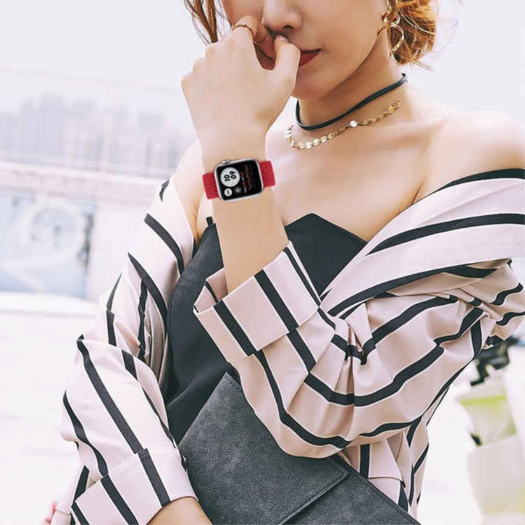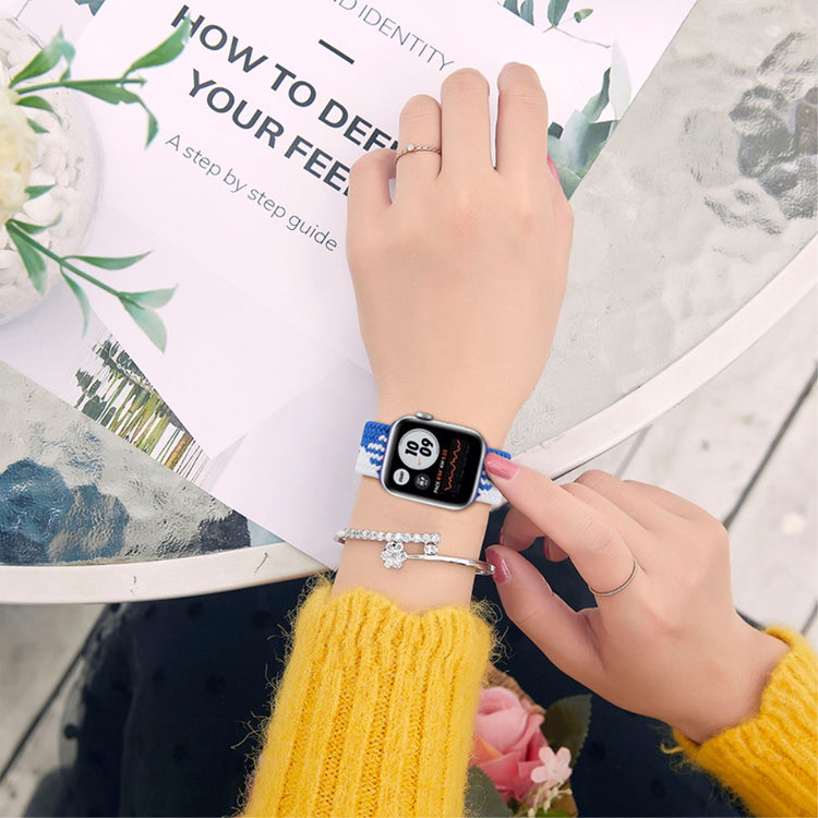 Denne elastiske, flettede urrem er perfekt til din Apple Watch Series 9 / 8 / 7 41mm / 6 / 5 / 4 / SE (2023) / SE(2022) / SE 40mm / 3 / 2 / 1 38mm.