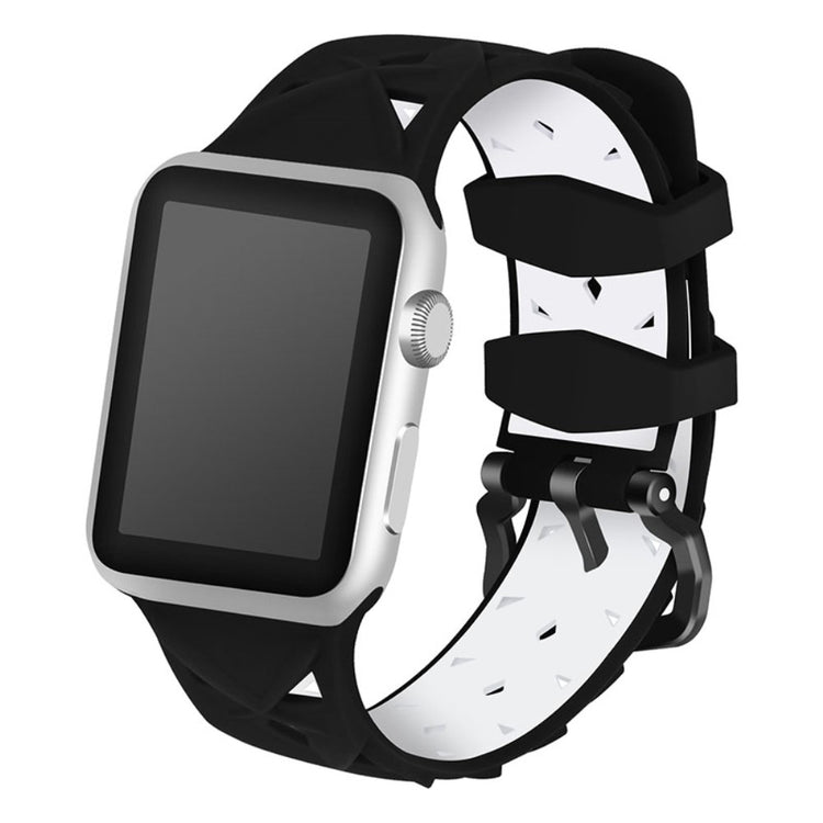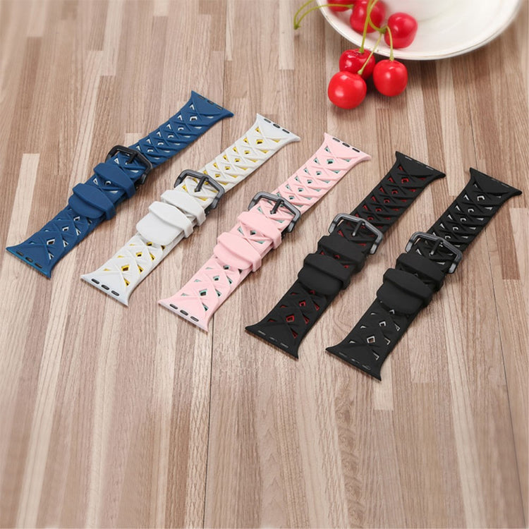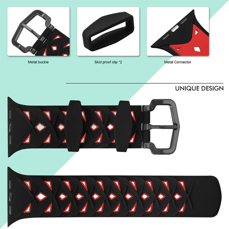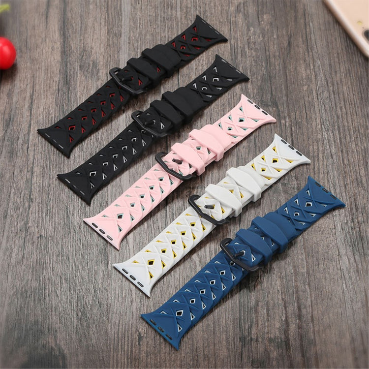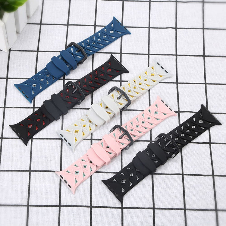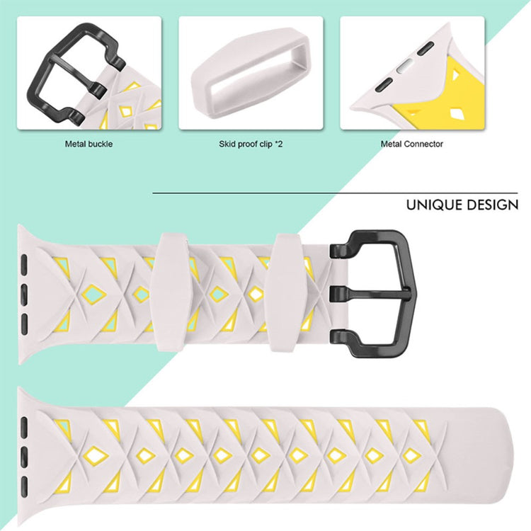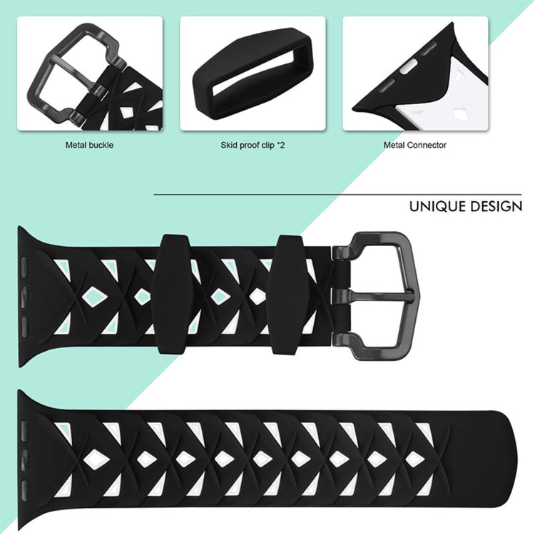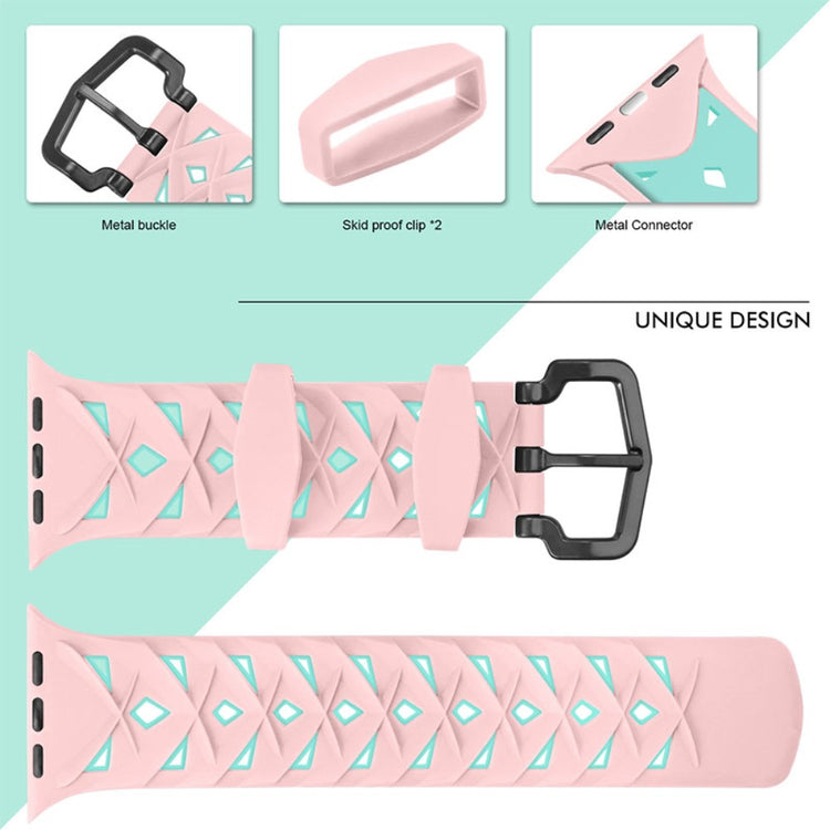 Denne silikone urrem med rhombus-design er perfekt til din Apple Watch Series 9 / 8 / 7 41mm / 6 / SE (2023) / SE (2022) / SE / 5 / 4 40mm / 3 / 2 / 1 38mm.