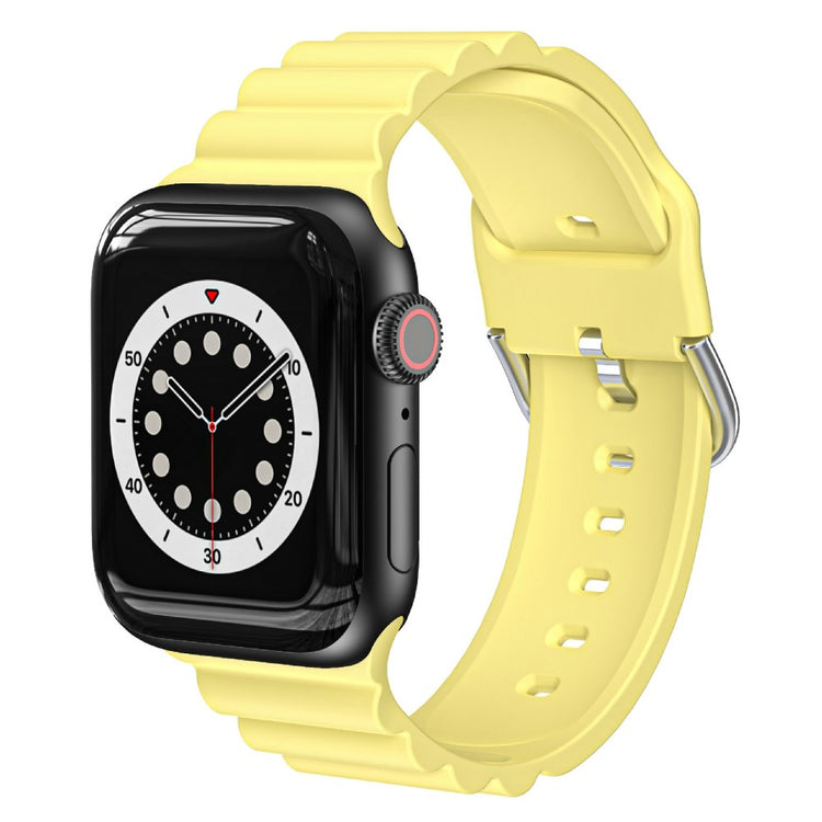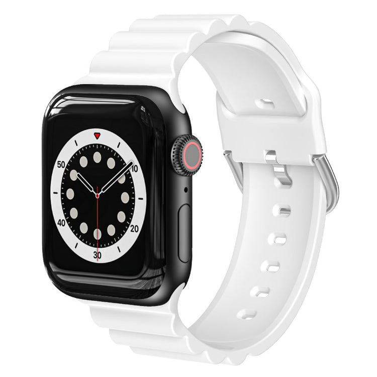 Denne vandrette stribede urrem i silikone til Apple Watch er et fremragende valg. Materialet er miljøvenligt silikone, hvilket betyder, at det er både blødt og behageligt at have på. Med sit enkle og moderigtige design med vandrette striber, passer denne rem perfekt til enhver stil. Remmen har flere huller og en metalspænde, der gør det nemt at justere størrelsen, så den passer præcist til dit håndled. Det er en ideel udskiftning, hvis din gamle rem er gået i stykker eller er slidt. Derudover fås remmen i flere farver, så du kan vælge den, der bedst imødekommer din stil. Specifikationer: str: 80mm+122mm, håndledsomkreds: 155-220mm, materiale: silikone, ørevidde: 22 mm.