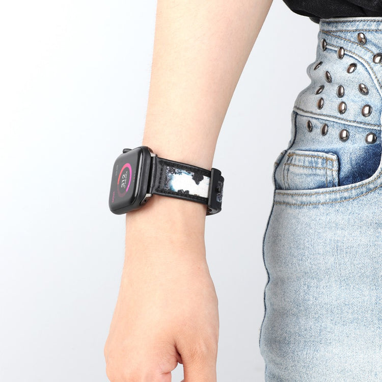 Lavet af ægte lædermateriale, blødt og behageligt at have på. Urremmen har et unikt og stilfuldt mønster lavet med blækmaling. Designet med metalspænde gør det nemt at justere størrelsen. En ideel udskiftningsrem til din gamle, ødelagte.