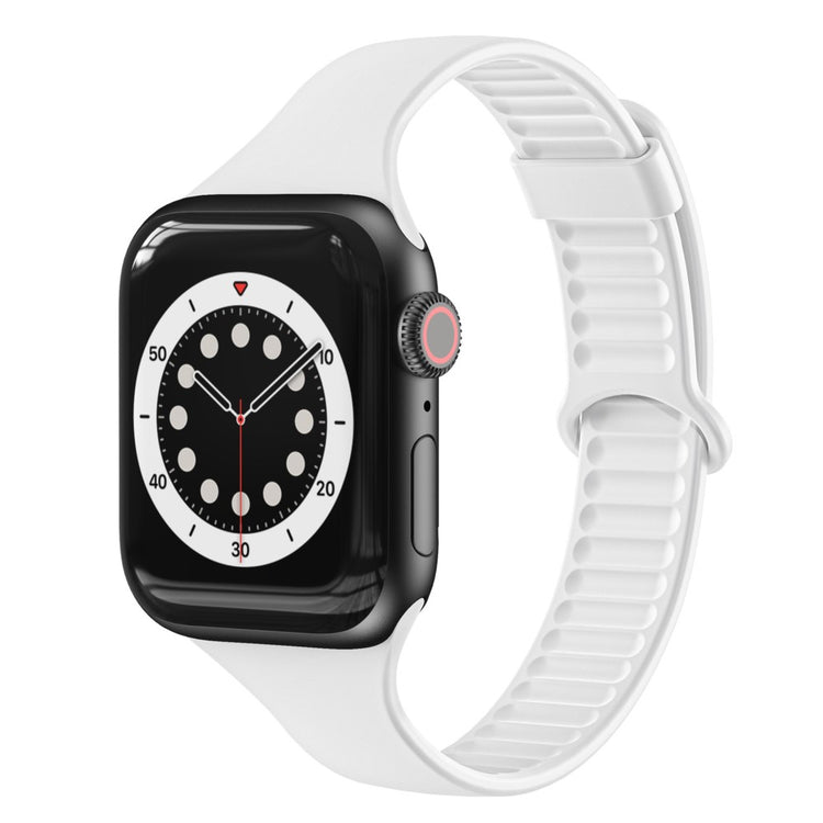 Der er flere gode grunde til at købe dette produkt: Remmen til Apple Watch Series 9 / 8 / 7 41mm / 6 / 5 / 4 / SE (2023) / SE(2022) / SE 40mm / 3 / 2 / 1 38mm er lavet af premium TPU, som er både slidstærk og holdbar i brug. Den ergonomisk designede rem føles blød og behagelig at have på. Størrelsen er nem at justere i forhold til din håndledsomkreds, hvilket gør den brugervenlig. Dette er den ideelle rem til at erstatte din gamle eller ødelagte rem. Der er flere farvemuligheder at vælge imellem, så du kan finde en, der passer til din personlige stil.