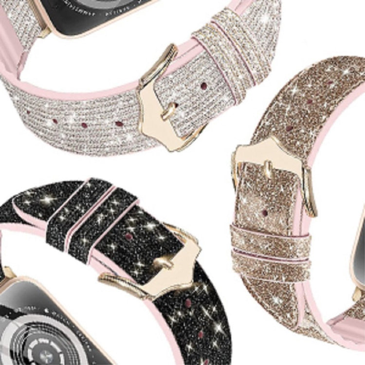 Dette armbånd er den perfekte erstatning til dit gamle eller beskadigede urarmbånd. Det elegante design med skinnende glimmer gør det til et stilfuldt tilbehør, der kan opdatere dit look. Armbåndet er lavet af silikone med en belægning af PU-læder, hvilket sikrer både komfort og holdbarhed. Med et flere huller design kan du nemt justere størrelsen for at opnå den perfekte pasform. Den klassiske pin-spænde sørger for, at armbåndet er nemt at tage af og på. Det er en fantastisk måde at personificere din Apple Watch på, samtidig med at du får en praktisk og funktionel løsning til dit ur. Med en størrelse der passer til håndled med omkreds fra 160 til 220 mm, er dette armbånd ideelt til enhver bruger.