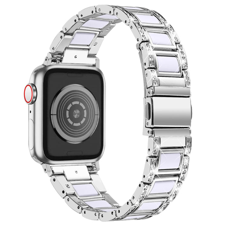 Komfortabel Apple Watch Series 7 41mm Metal og Rhinsten Rem - Sølv#serie_2