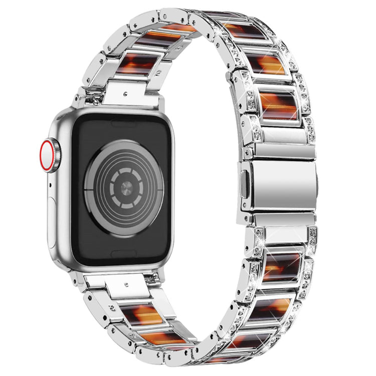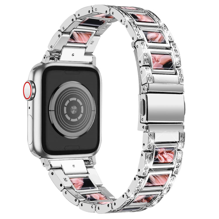 Dette urrem til Apple Watch er lavet af rustfrit stål og har resinblokke, hvilket gør den både kreativ og holdbar. Den er dekoreret med skinnende rhinsten, der giver et unikt og stilfuldt udseende, så du kan personliggøre dit smartwatch. Den metalfoldende spænde sikrer ekstra sikkerhed og gør den nem at tage af og på.