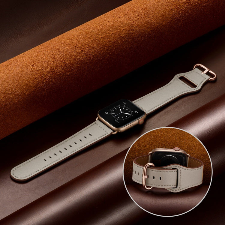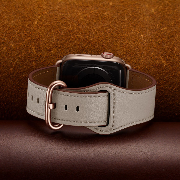 Fortrinligt Apple Watch Series 7 41mm Ægte læder Urrem - Beige#serie_3