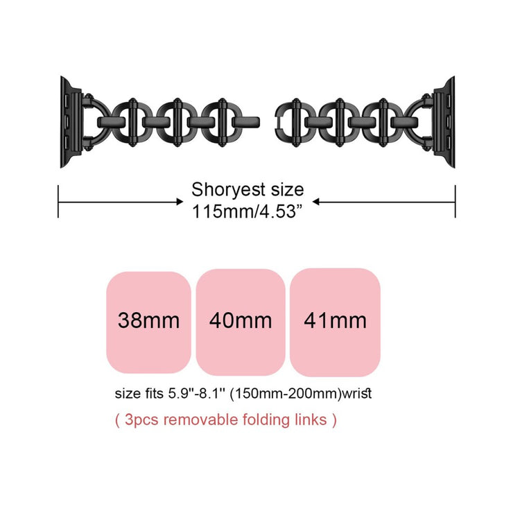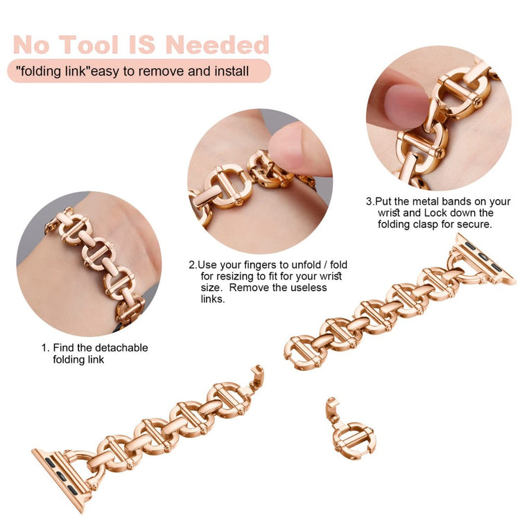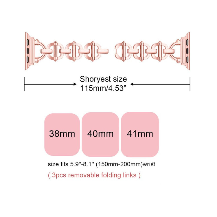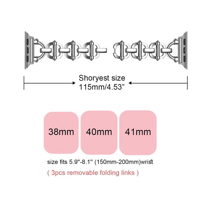 Dette armbånd til Apple Watch er fremstillet af højkvalitets metalmateriale, hvilket giver et moderne og elegant udseende. Hver del er omhyggeligt lavet af erfarne håndværkere, hvilket sikrer, at armbåndet er både holdbart og komfortabelt at bære. Den holdbare spænde giver ekstra beskyttelse til din ur og er derfor sikrere end mange andre typer lukkemekanismer. Hvert enkelt detalje i fremstillingsprocessen er nøje overvejet med fokus på håndværk, design og æstetik. Dette armbånd er særligt velegnet til fester, møder, rejser og forretningsarrangementer, hvor du ønsker at fremstå stilfuld. Med en størrelse på 180 mm passer det til håndled med omfang fra 150 mm til 250 mm, hvilket gør det til et perfekt valg for mange.