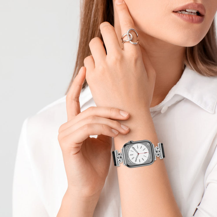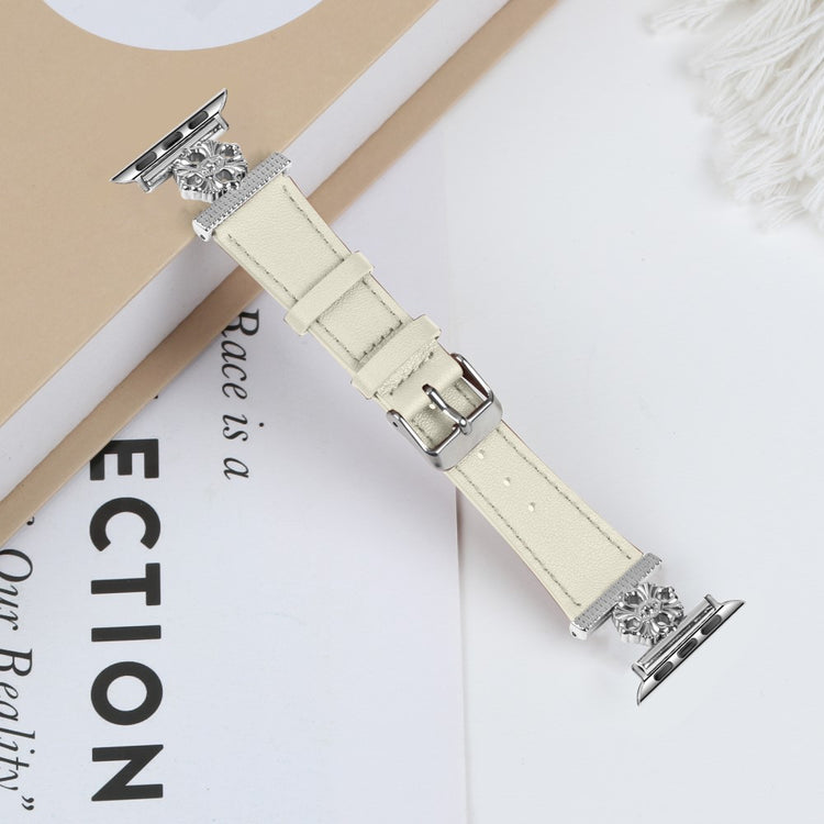 Super Slidstærk Ægte Læder Og Metal Universal Rem passer til Apple Smartwatch
