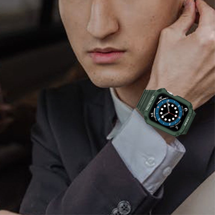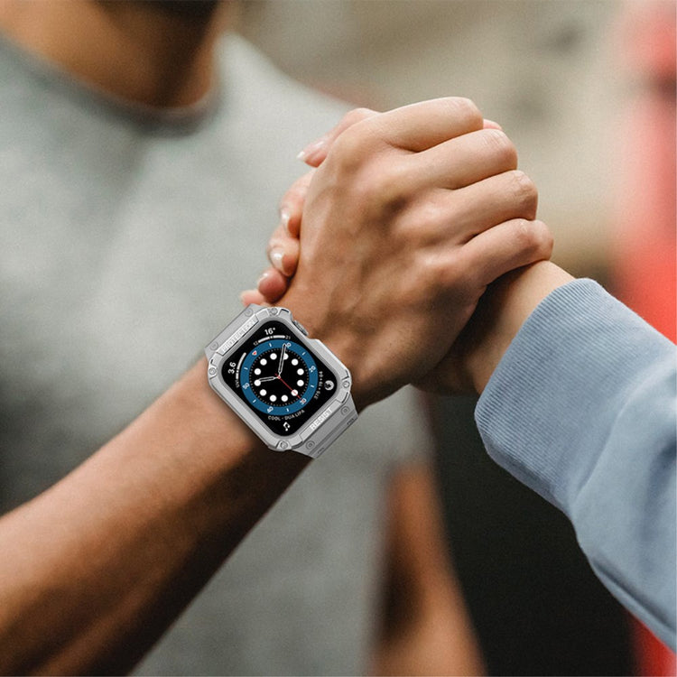 Med denne 2-i-1 rem i kontrastfarve og PC urkasse til Apple Watch får du en holdbar og slidstærk løsning, der både fungerer som beskyttelse og stilfuldt tilbehør. Den integrerede designkombination gør det nemt at personalisere dit ur, hvilket giver det et unikt og attraktivt udseende. Desuden er det en ideel erstatning for en gammel eller beskadiget rem, og den passer perfekt til mange forskellige situationer som arbejde, dates, rejser og daglig brug. Remmen er let at installere og fjerne, hvilket gør det nemt at skifte stil efter behov. Produktets lette vægt og passende dimensioner sikrer, at det er komfortabelt at bære dagen lang. Med en højkvalitets TPU-rem og en enestående PC-urkasse er dette produkt det perfekte valg for enhver Apple Watch-ejer.