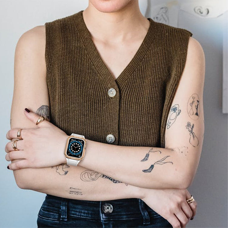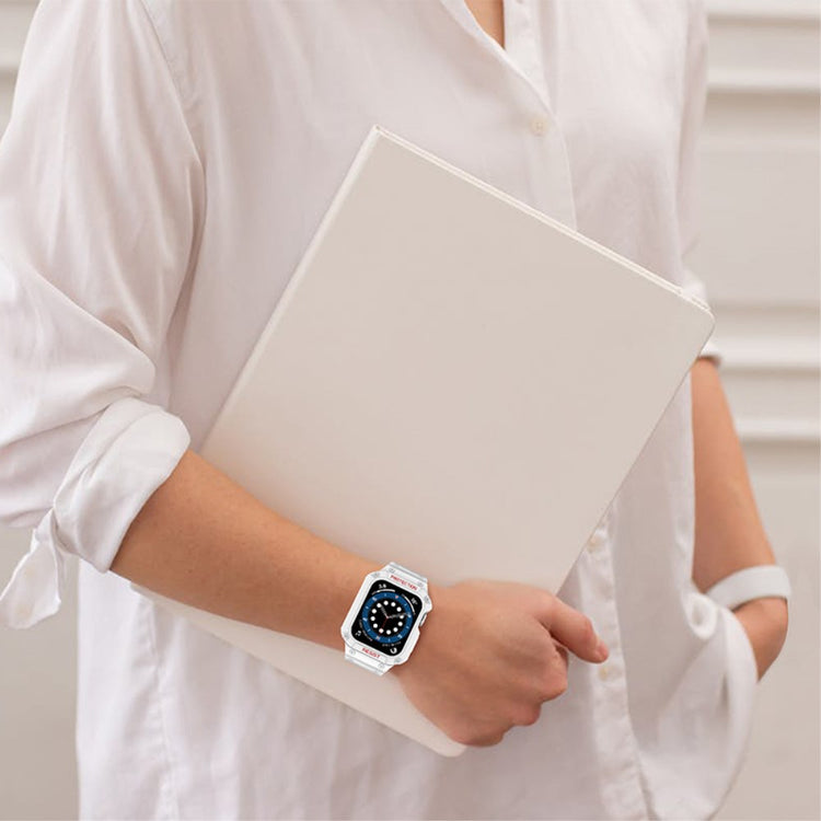 Denne TPU-urrem og plastcover er designet til at give din Apple Watch et unikt og stilfuldt look. Den er slidstærk og modstandsdygtig over for slid, og den er perfekt til at give dit ur et personligt præg. Udskift din gamle eller ødelagte urrem med denne attraktive og funktionelle model.
