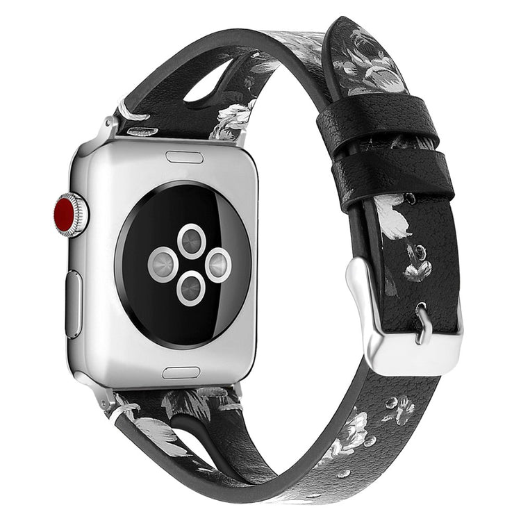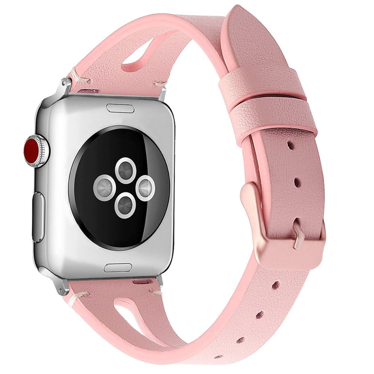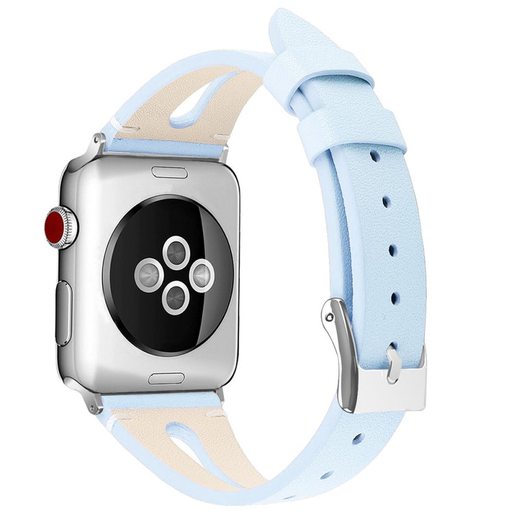 Elegant læderrem: designet med udskæringer, let og blød, du vil måske endda glemme, at du har den på. Fleksibel pasform: passer til håndledsstørrelser fra 5.5 - 7.8 tommer, velegnet til både små og store håndled. Let at installere: den højkvalitets rustfri stålforbindelse fungerer problemfrit med den originale til iwatch, bare skub forbindelsen ind i det forsænkede forbindelsesstykke.