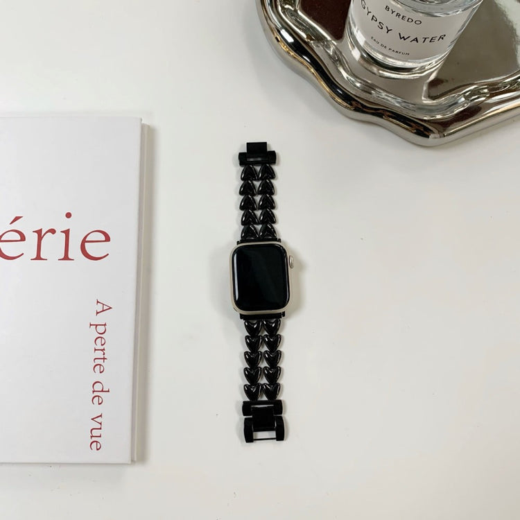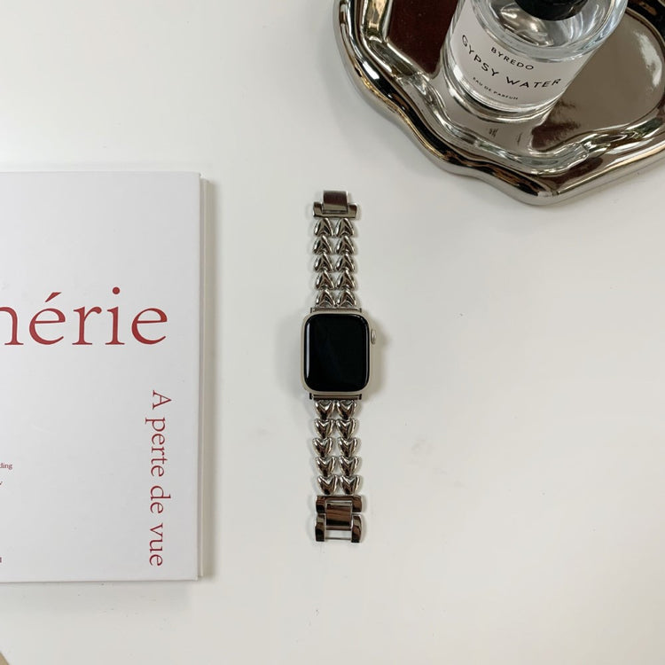 En metal urrem er det perfekte valg for dem, der ønsker at opgradere deres Apple Watch med stil og funktionalitet. Denne urrem er lavet af højkvalitets legeringsmetal, hvilket sikrer at den er både holdbar og komfortabel at bære. Den er omhyggeligt poleret, hvilket gør den modstandsdygtig over for sved og daglig slitage. Det dobbelt-række hjerte design tiltrækker opmærksomhed og gør dig til fokus på enhver anledning, uanset om det er til fest, arbejde eller hverdag. Denne urrem er også et ideelt erstatningsprodukt for din gamle eller ødelagte urrem og passer til flere modeller, fra den nye Ultra 2 til tidligere versioner. Med en justerbar størrelse på 165mm, passer den til håndled med omkreds mellem 160-220mm, så du kan finde den perfekte pasform. Opgrader din stil med denne fantastiske urrem, der kombinerer elegance og funktionalitet!