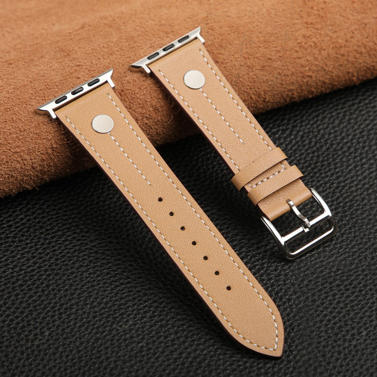 Apple Watch 49mm / 45mm / 44mm / 42mm Genuine Cow Leather Band Rivet Decor Strap - Tan#serie_3