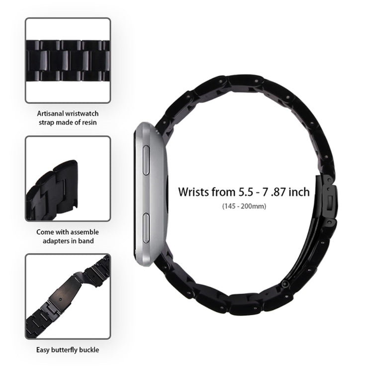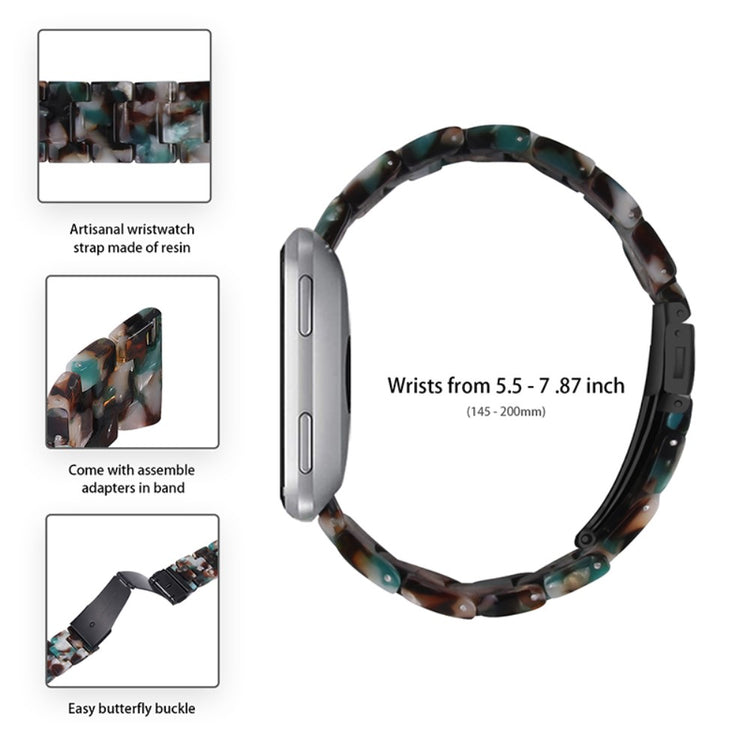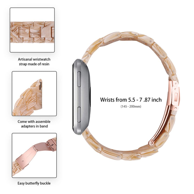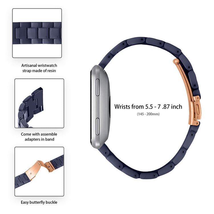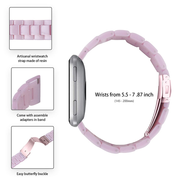 Remmen er lavet af høj kvalitet vandtæt og rustfrit resinmateriale, poleret af erfarne håndværkere, og har en sikker lukning med dobbelt knap i rustfrit stål. Den fleksible tre-perle resindesign gør det nemt at afmontere og udskifte remmen. Remmen er kompatibel med Fitbit Versa 2, Fitbit Versa, Fitbit Versa Lite og Fitbit Versa SE, og passer til en håndledsomkreds på 5.5-7.87 tommer.