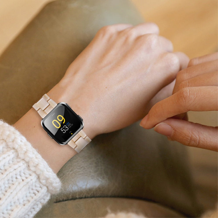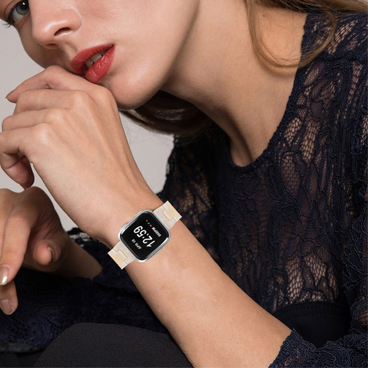 Der er mange gode grunde til at købe dette produkt: Hurtig Udløsning 3 Perler Resin Urrem med Rustfrit Stål Foldelås til Fitbit Versa 2/Fitbit Versa/Versa Lite/Versa SE. For det første er det lavet af materialer af høj kvalitet; remmen består af resin, der er både vandafvisende og rustfri. Hver eneste perle er håndpoleret af erfarne håndværkere, hvilket sikrer en fremragende finish. Derudover kombineres resinmaterialet med en dobbelt-knap foldelås i rustfrit stål, som giver en sikker og pålidelig lukning. Designet er også meget fleksibelt; remmen har en stainless steel-adapter og foldelås, hvilket gør det nemt at afmontere og udskifte. Specifikationerne viser, at remmen passer til håndled med en omkreds på 5,5-7,87 tommer og er kompatibel med Fitbit Versa 2, Fitbit Versa, Fitbit Versa Lite, og Fitbit Versa SE. Dette produkt kombinerer kvalitet, design og funktionalitet på en måde, der gør det til det ideelle valg for enhver Fitbit-bruger.