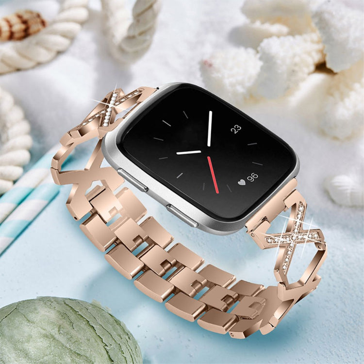 Dette armbånd i premium rustfrit stål med X-design er både moderigtigt og holdbart. Med skinnende rhinestone-dekorationer fremstår det ekstra luksuriøst og tilføjer et strejf af elegance. Det er en ideel erstatning for dit gamle eller ødelagte armbånd og er nemt at installere og fjerne uden behov for værktøj. Passer til mange lejligheder og er kompatibelt med flere forskellige Fitbit-modeller, hvilket gør det til en alsidig og praktisk løsning for ethvert behov. Armbåndet passer til håndled med en omkreds på 13.5-23 cm.