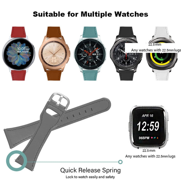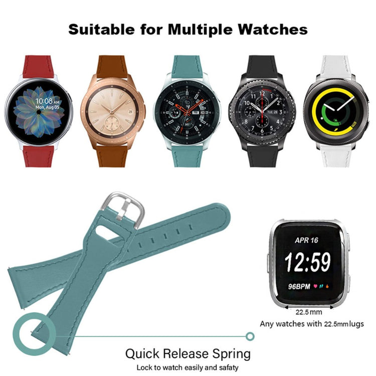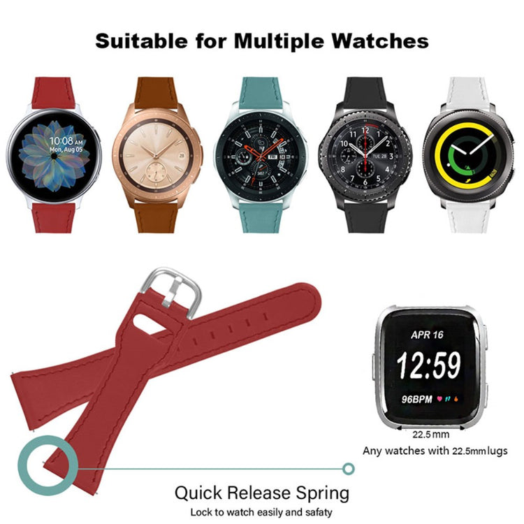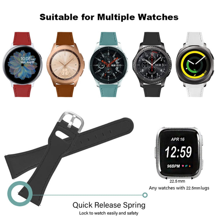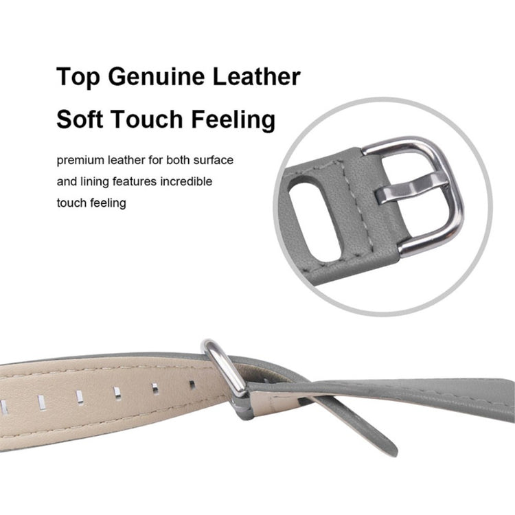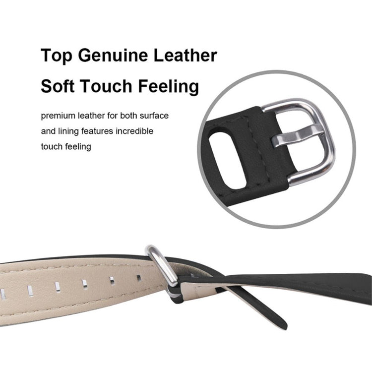 Premium læderrem, holdbar og behagelig. Hullerne på remmen gør det nemt at justere efter din størrelse, og med rustfrit stål spænde er det let at tage af og på. Passer til flere modeller og er ideel til både arbejde og fritid.
