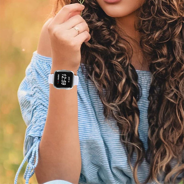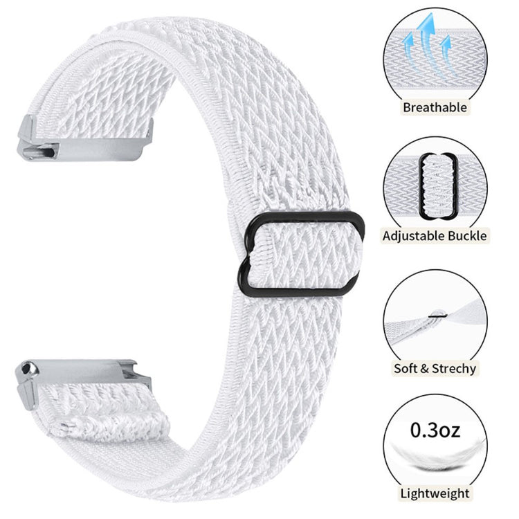 Der er mange gode grunde til at investere i denne urrem til Fitbit Versa-serien. Den er lavet af premium, høj-kvalitets elastisk flettet materiale, som er både slidstærkt og holdbart. Desuden giver den en behagelig bæreoplevelse, så du ikke skal bekymre dig om, at noget skader dit håndled. Med det elastiske design kan du justere urremmen efter dine ønsker, og længden af urremmen kan let justeres ved enkel montering og demontering. Dette gør den til en ideel erstatning for din gamle, ødelagte urrem. Produktet passer til en håndledsomkreds fra 5,5-8,1" og er kompatibelt med flere modeller: Fitbit Versa 2, Fitbit Versa, Fitbit Versa Lite, og Fitbit Versa SE.