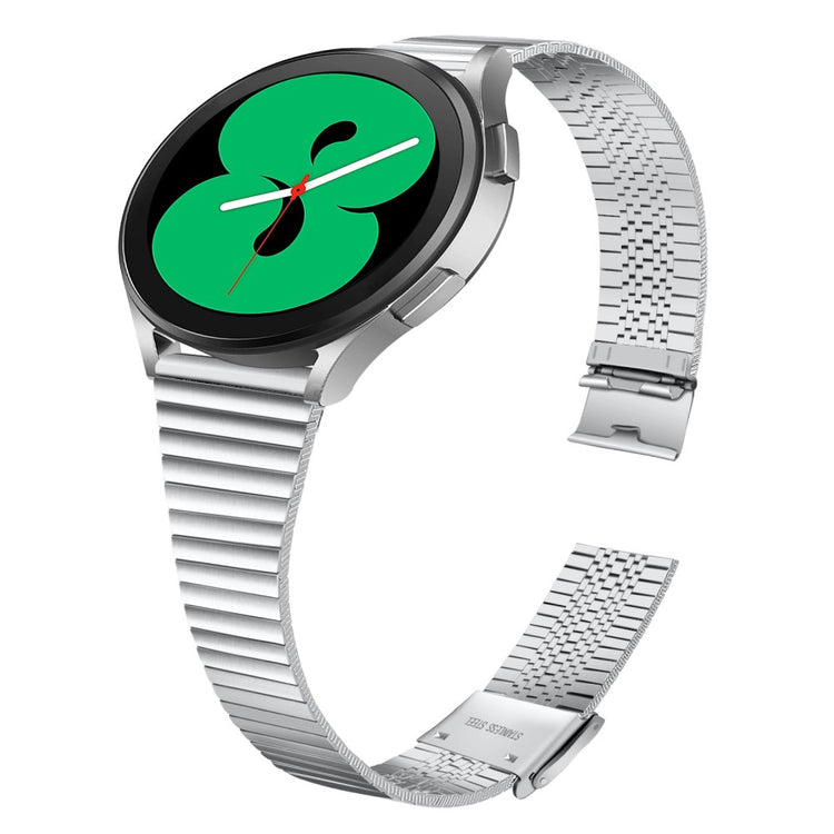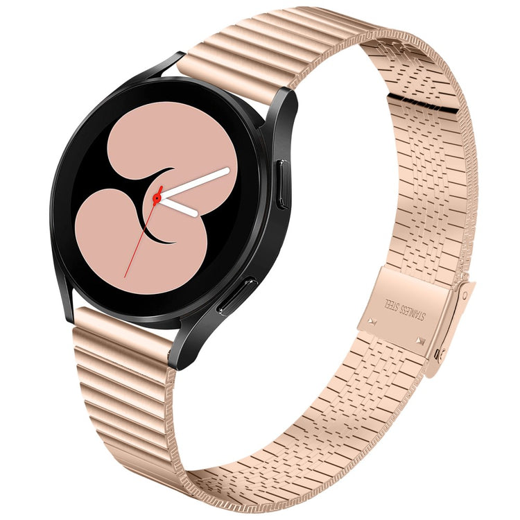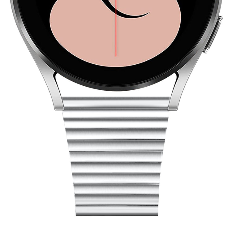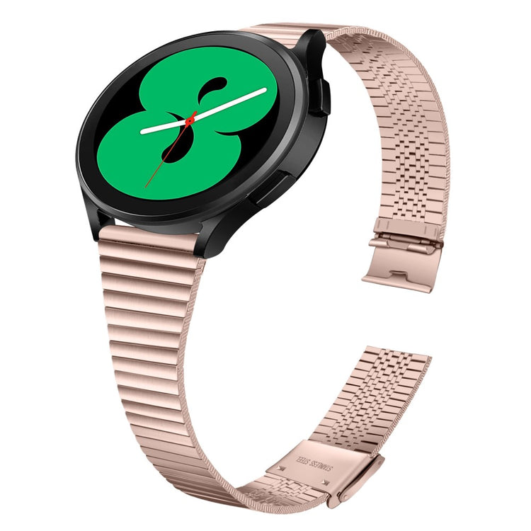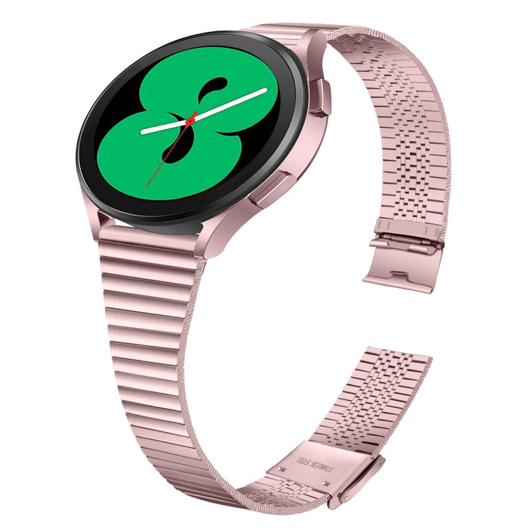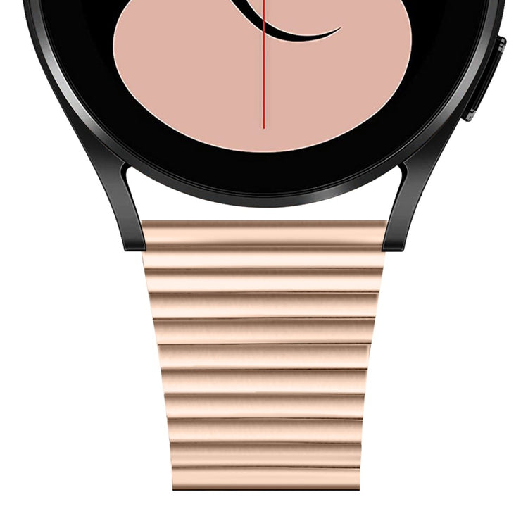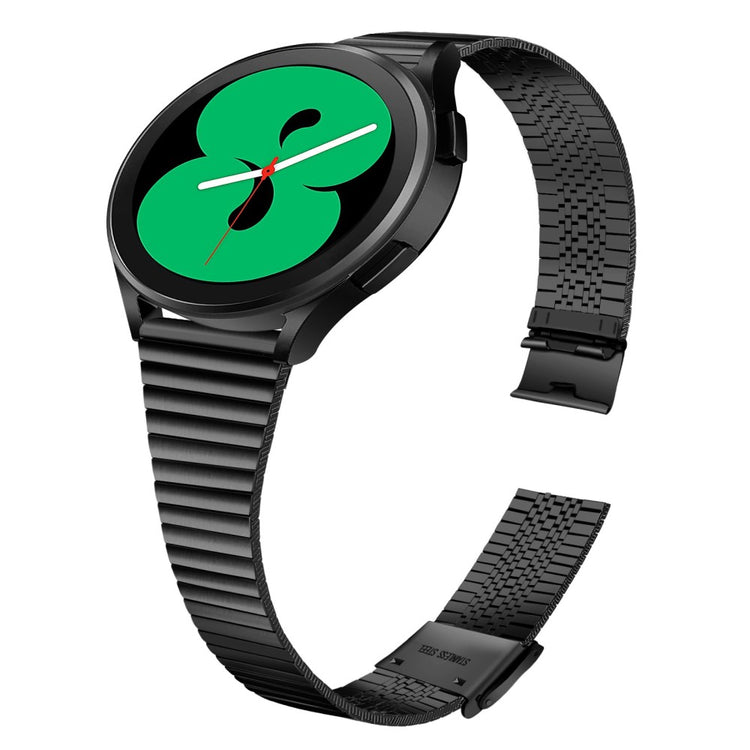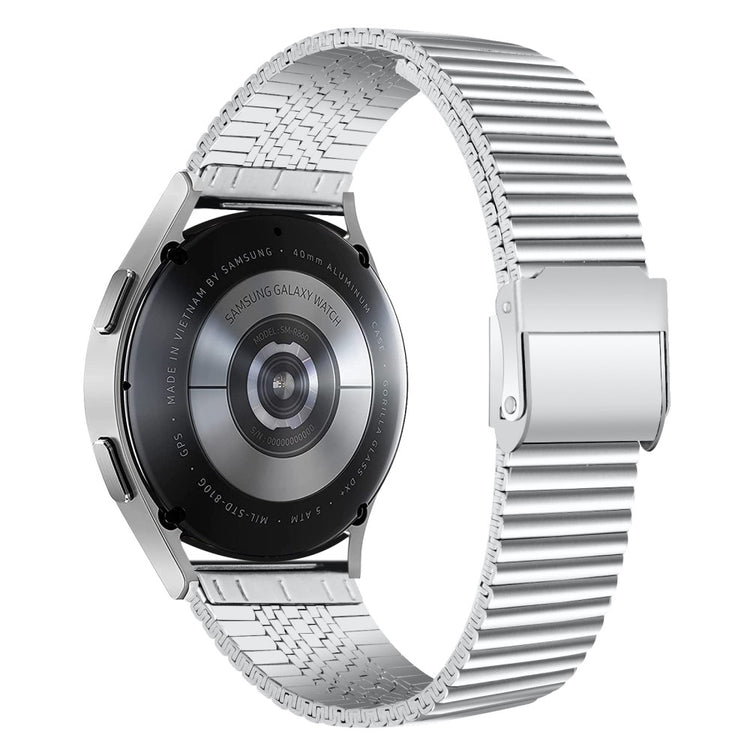 Dette urrem er lavet af høj kvalitets metal og kan bæres i lang tid. Den opgraderede dobbelte lukning sikrer, at remmen sidder sikkert på håndleddet, og længden kan justeres efter behov. Remmen passer til flere enheder som Samsung Galaxy Watch og Huawei Watch GT2, og dens enkle men stilfulde design gør den ideel til både arbejde og hverdag.