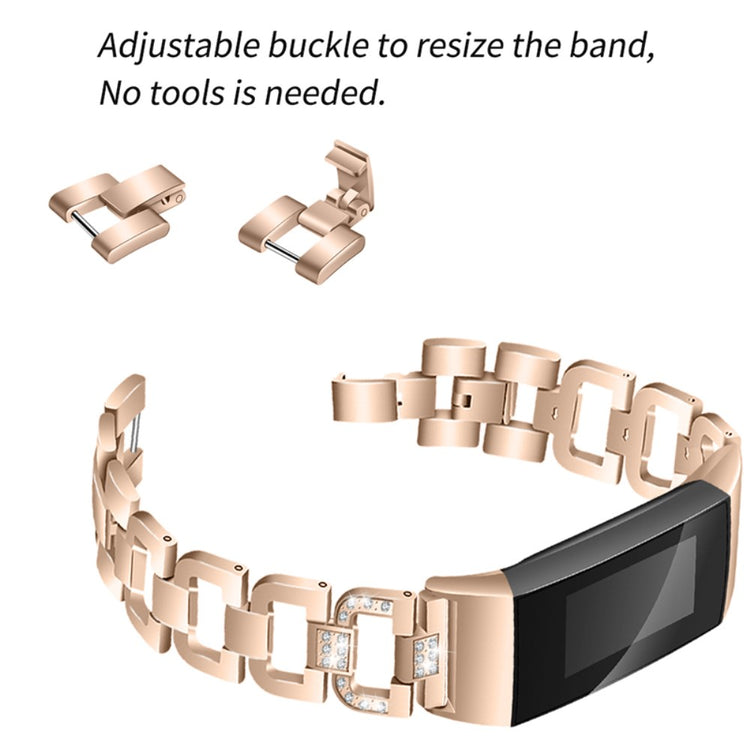 Fitbit Charge 4 / 3 elegant rhinestone watch strap - Rose Gold#serie_1