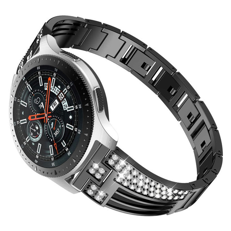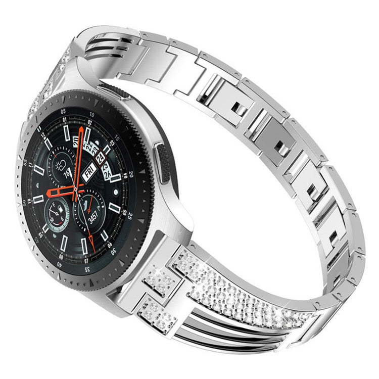 Erstatningsremmen er designet til Samsung Galaxy Watch3 45mm, Gear S3 Frontier og Classic samt en række andre smartwatches. Den er lavet af metal og er både komfortabel og stilfuld med funklende rhinesten dekoration. Let at installere og fjerne, er denne rem en ideel erstatning for en gammel eller defekt rem.