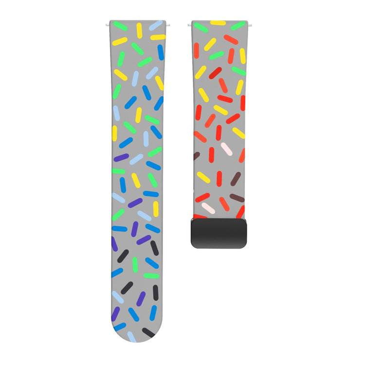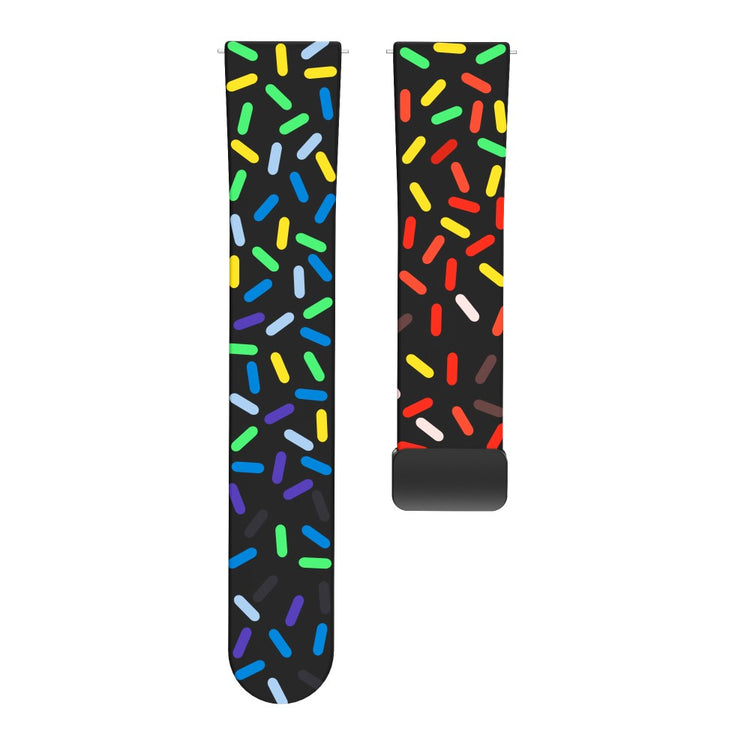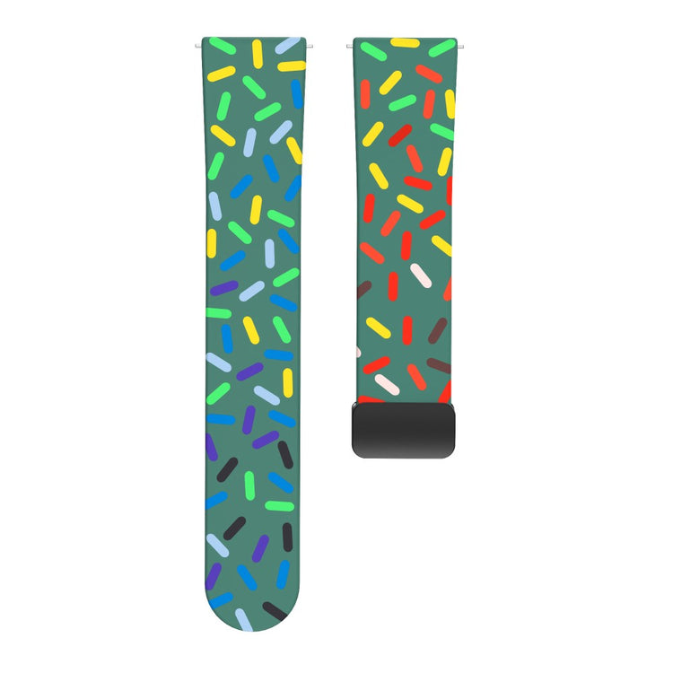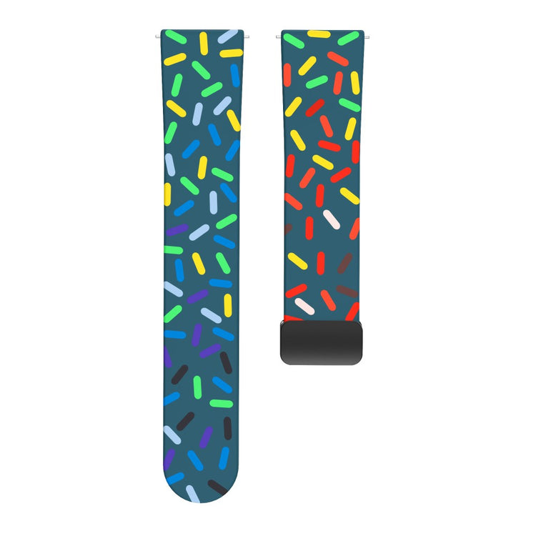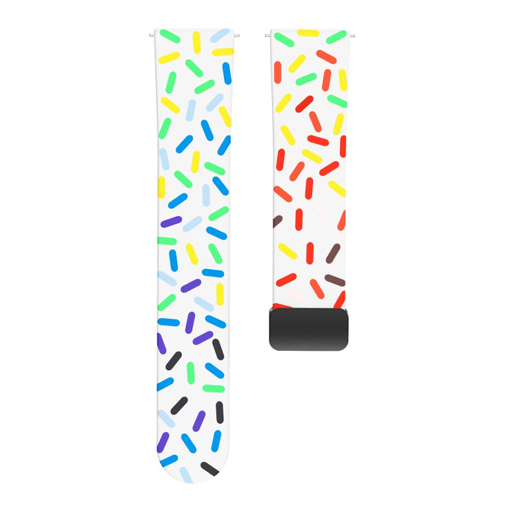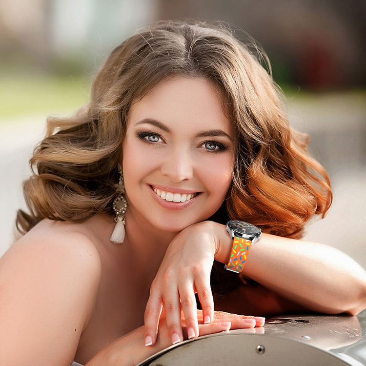 Hvis du leder efter et stilfuldt og funktionelt watchband, bør du overveje dette 22mm urrem. Det er fremstillet af høj kvalitet silikone, hvilket gør det behageligt at have på hele dagen. Den hudvenlige materiale sikrer, at du ikke oplever allergiske reaktioner. Dette urrem er også designet med et magnetisk foldespænde, der gør det nemt at tage uret af og på, samt at justere størrelsen efter dit håndled. Det farverige prikmønster giver dig mulighed for at udtrykke din personlige stil, og du kan nemt matche det med din daglige påklædning. Det er det ideelle erstatningsrem for et gammelt eller beskadiget ur, og det er perfekt til både arbejde og fritidsaktiviteter. Gør dit ur til en del af din stil med et holdbart og komfortabelt urrem, der passer til enhver lejlighed.
