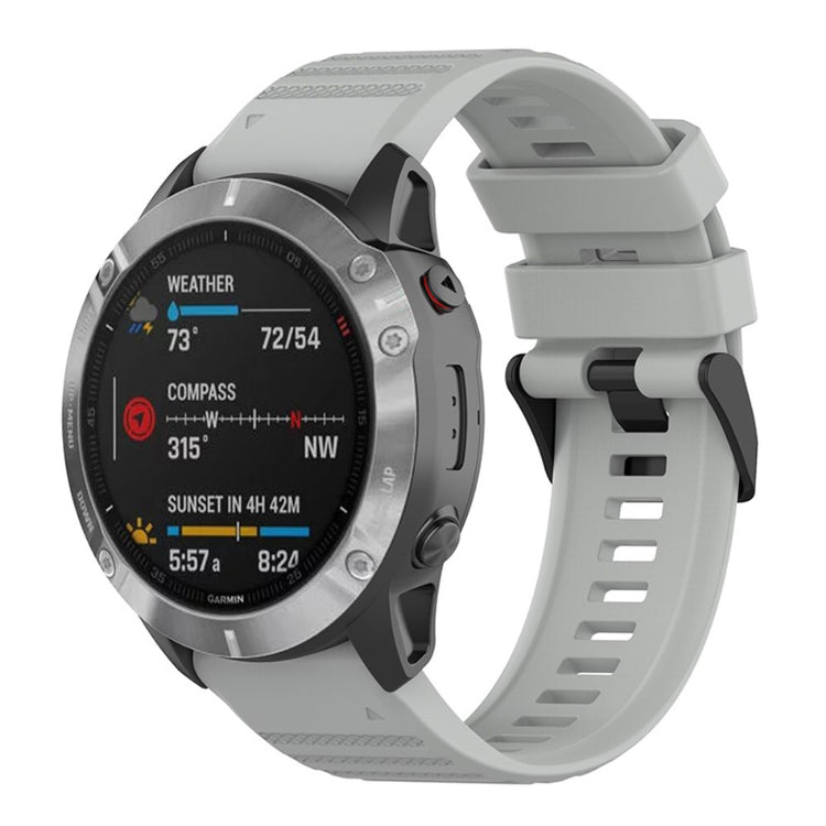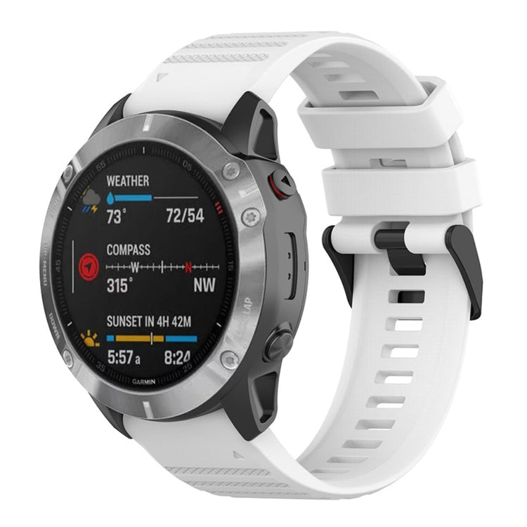 Der er mange gode grunde til at købe dette produkt: 22mm silikone urrem med skruetrækkere til Garmin Fenix 6 GPS/6 Pro GPS/6 Sapphire GPS/Garmin Fenix 5/5 Plus - Grøn. Først og fremmest er størrelsen justerbar efter dit håndled, hvilket sikrer en perfekt pasform. Urremmen er lavet af fødevaregodkendt silikone, som er miljøvenlig, blød og behagelig at have på. Dobbelt ring design sikrer, at remmens ende er fastlåst, når du har den på, hvilket giver ekstra sikkerhed. Der er flere farvemuligheder, så du altid kan finde en, der passer til din stil. Produktet er let med en nettovægt på kun 20g og har en længde på 92mm+123mm samt en bredde på 22mm. Det er kompatibelt med flere Garmin-modeller, herunder Garmin Fenix 6 GPS/6 Pro GPS/6 Sapphire GPS, Garmin Fenix 5/5 Plus, Garmin Approach S60/Approach S62, Garmin Quatix5/Quatix5 Sapphire, Garmin MARQ-serien og Garmin Forerunner 935/Forerunner 945. Vær opmærksom på, at det kun er remmen, der er inkluderet, ikke uret.