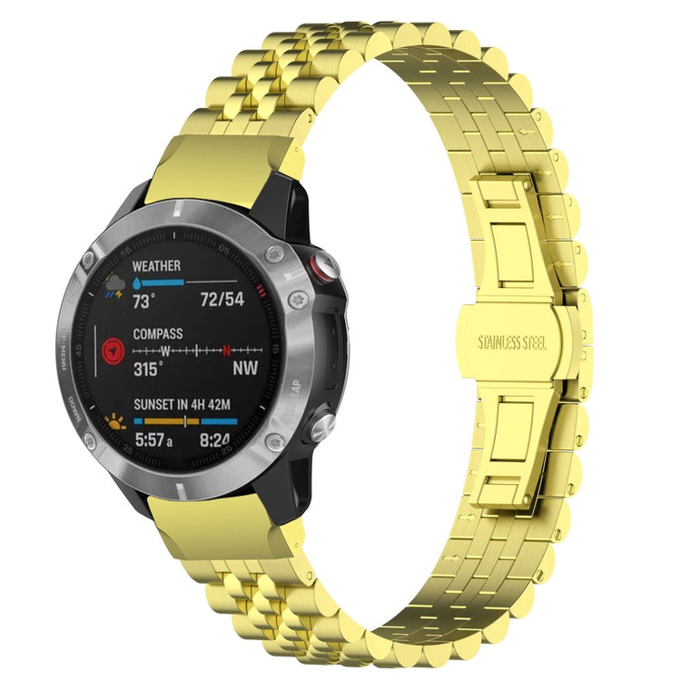 Erstatningsrem til Garmin Fenix 7 / Fenix 6 / Fenix 5, fremstillet af kvalitets rustfrit stål, som er slidstærkt og holdbart. Remmen har et stilfuldt udseende, der passer til både forretnings- og fritidsbrug. Den er let at justere med det medfølgende værktøj til kædefjernelse.
