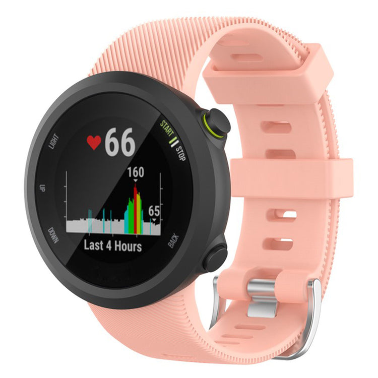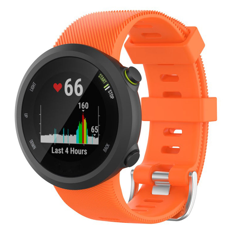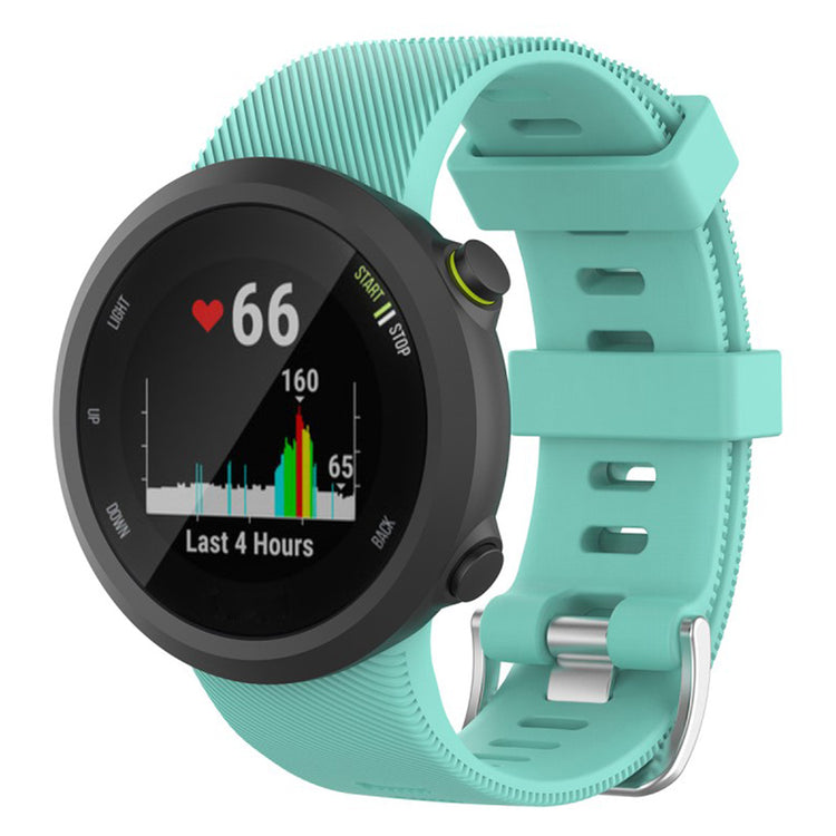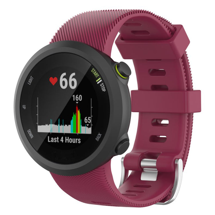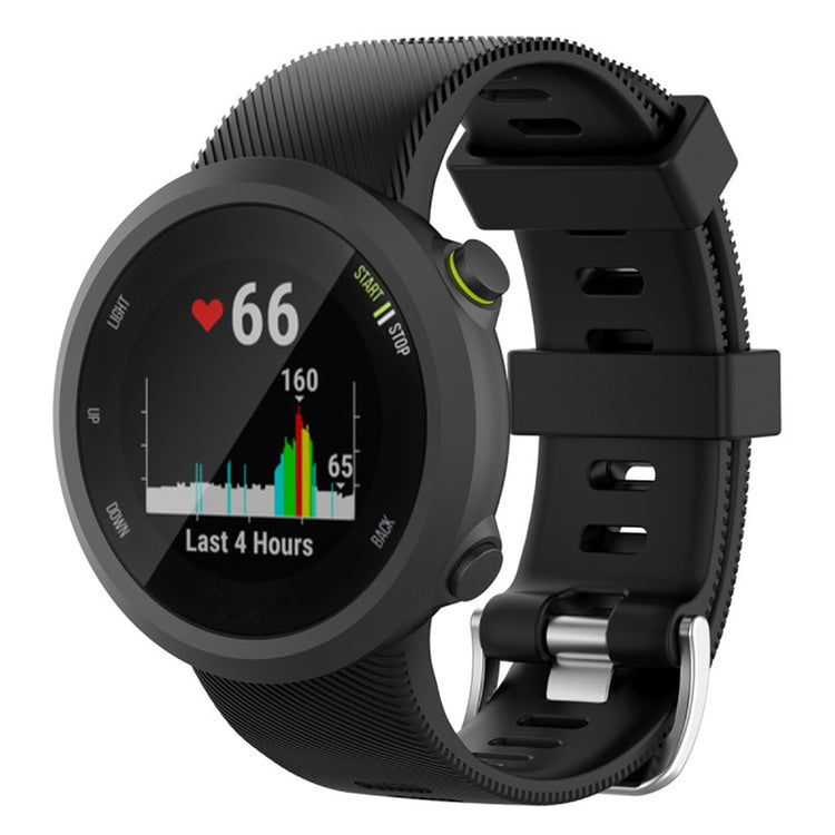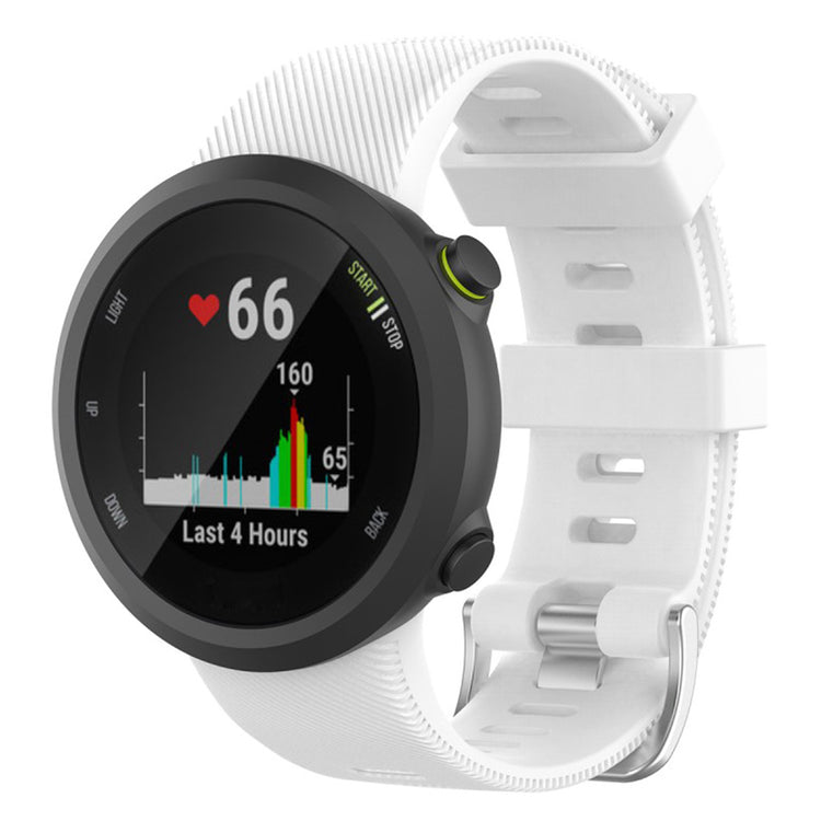 Fremstillet af silikone, behagelig og holdbar at bære. Størrelsen kan justeres efter omstændighederne på det individuelle håndled med klassisk metalspænde og mange huller for nem justering. En perfekt erstatning til dit ur, kompatibel med Garmin Forerunner 45.
