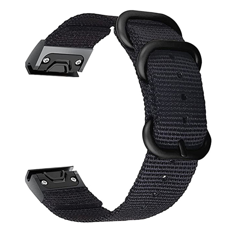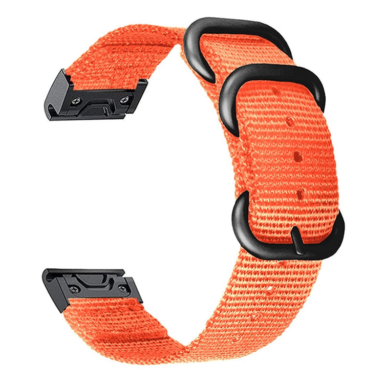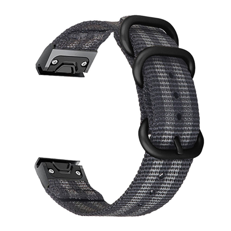 Få en personliggørelse af din smartwatch med dette justerbare håndledsrem i premium nylon. Det bløde og komfortable materiale har tre rustfri stål-sløjfer til størrelsesjustering og dekoration, samt et flere huller design for nem justering. Erstat nemt din gamle eller beskadigede rem med dette ideelle valg, der passer til forskellige Garmin-modeller.