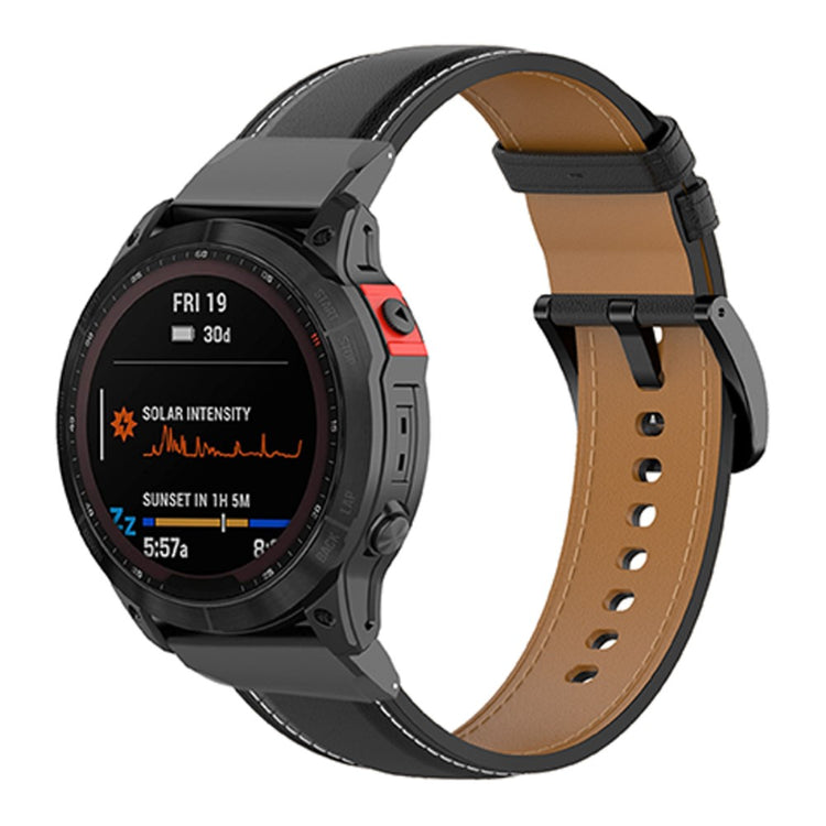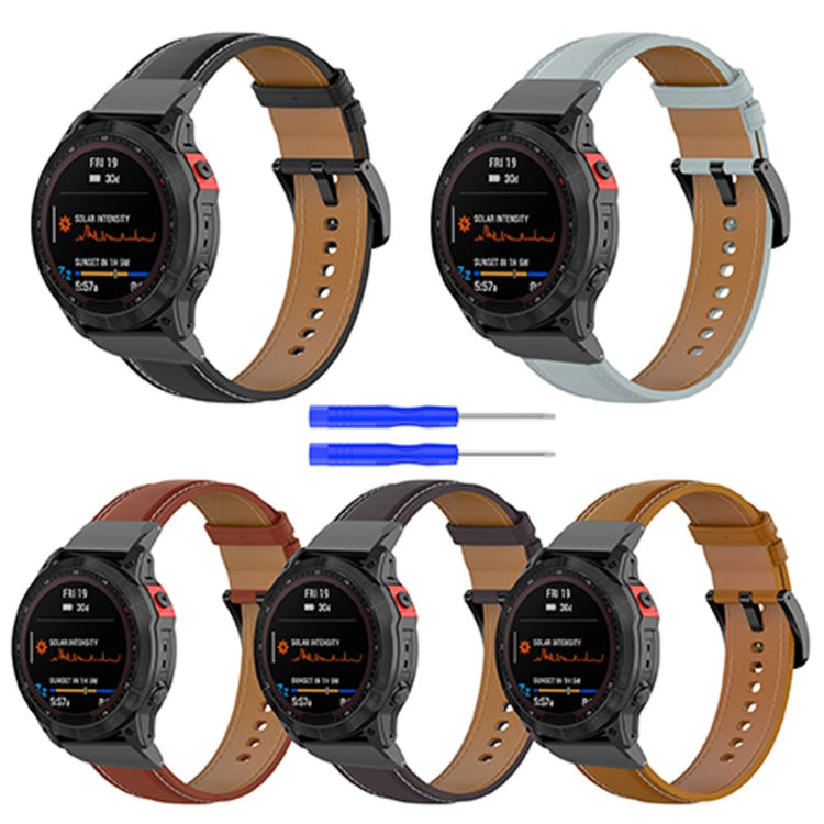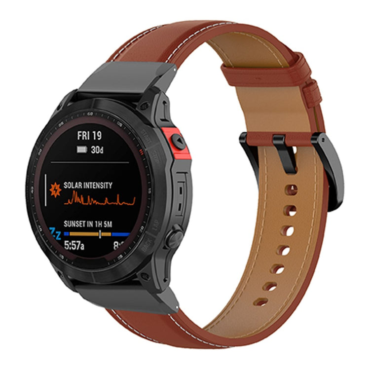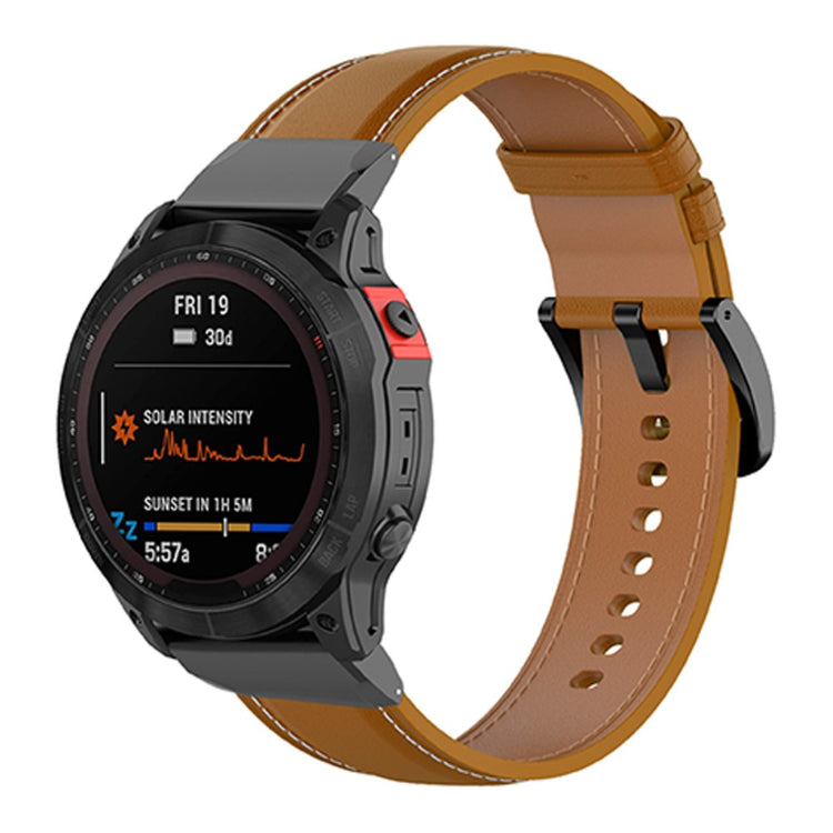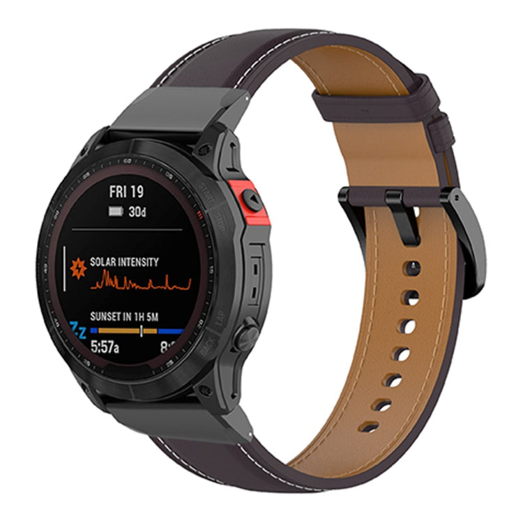 Der er mange gode grunde til at købe dette produkt. Det er fremstillet af ægte læder og en 316 rustfrit stål connector, hvilket gør det blødt og behageligt at have på. Arbejdskvaliteten er fremragende, og det ensfarvede design giver et unikt, smukt og stilfuldt udseende. Urremmen er udstyret med en hurtigudløser, som gør det nemt at installere og fjerne den. Den polerede spænde i rustfrit stål gør det let at justere størrelsen, hvilket gør det til et godt valg, hvis du leder efter en alternativ rem til dit smarte armbånd. Denne urrem er egnet til både arbejde og fritid, samt på andre daglige anledninger for både mænd og kvinder. Den passer til en række forskellige modeller, herunder Garmin Tactix Delta, Coros Vertix 2, Garmin Enduro, og mange flere.