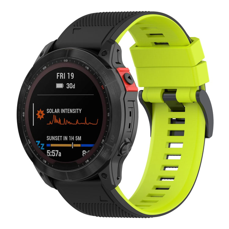 Dette armbånd er det perfekte valg til din Garmin enhed, fordi det er fremstillet af højkvalitets silikone, hvilket sikre en komfortabel pasform hele dagen. Materialet er hudvenligt og allergivenligt, så du kan bære det uden bekymringer. Den holdbare lås er lavet af premium materiale, hvilket garanterer langvarig brug. Med et smart design med flere huller kan du nemt justere størrelsen, så det passer perfekt til dit håndled. Dette armbånd er en ideel erstatning for dit gamle eller beskadigede armbånd og passer til både arbejde og fritidsaktiviteter for både mænd og kvinder. Du har også mulighed for at vælge imellem forskellige farver, så du kan finde det armbånd, der bedst matcher din stil og personlighed.