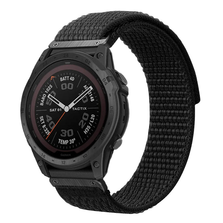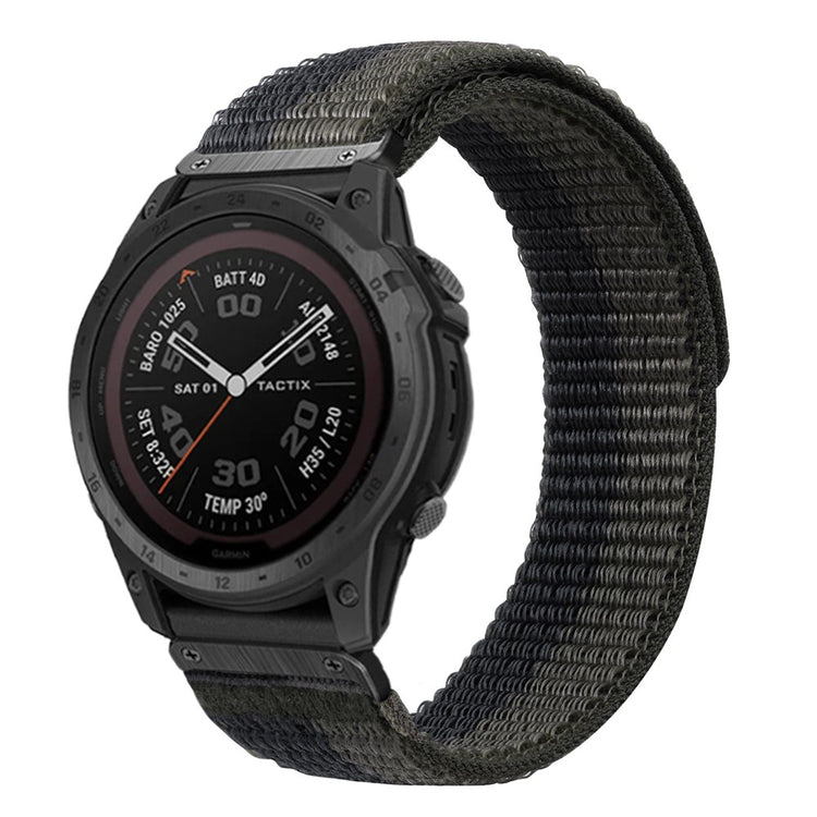 Denne justerbare urrem i nylon på 26mm er designet som erstatning til din Garmin Tactix 7 Pro, Fenix 7X eller Fenix 6X Pro. Den er fremstillet af fleksibelt nylon, der er åndbart, behageligt og blødt at have på.