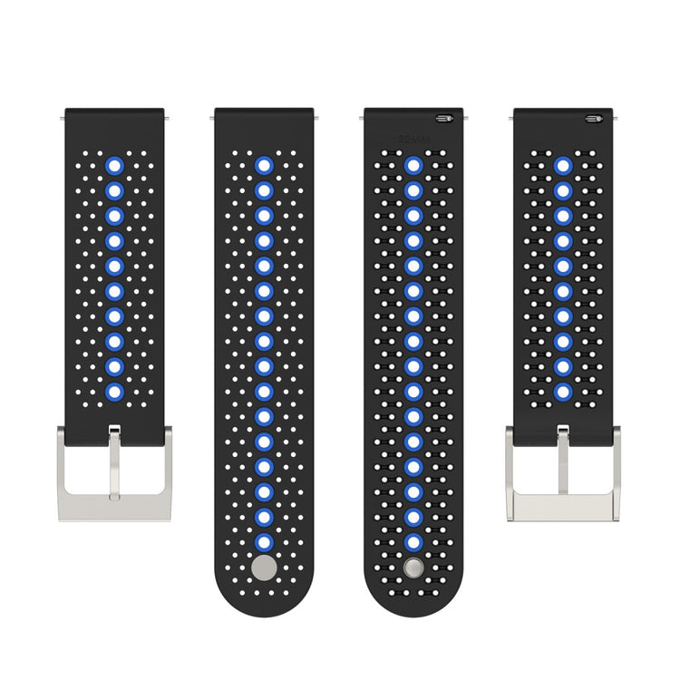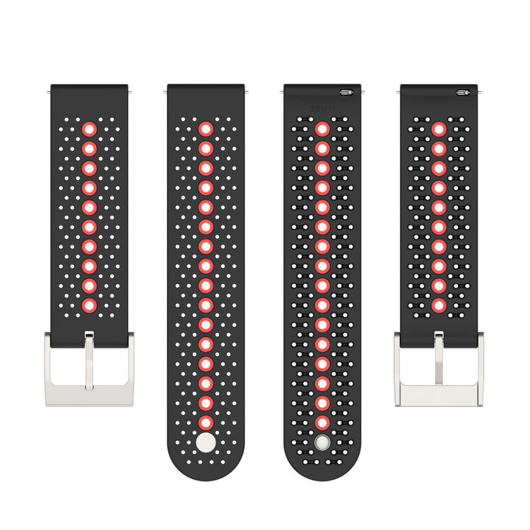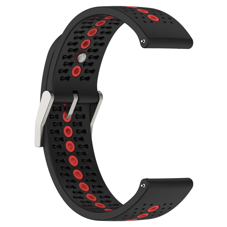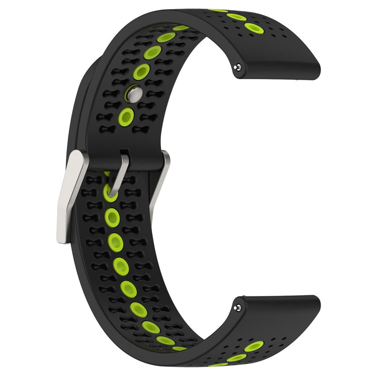 Dette bi-color urrem er perfekt til at personalisere dit smart ur og er lavet af høj kvalitets silikone, hvilket gør det blødt og behageligt at have på. Med et design, der har flere huller, er det let at justere i henhold til omkredsen af dit håndled. Det er en ideel erstatning for din gamle eller beskadigede rem og passer til forskellige modeller som Samsung Galaxy Watch og Garmin-ure.