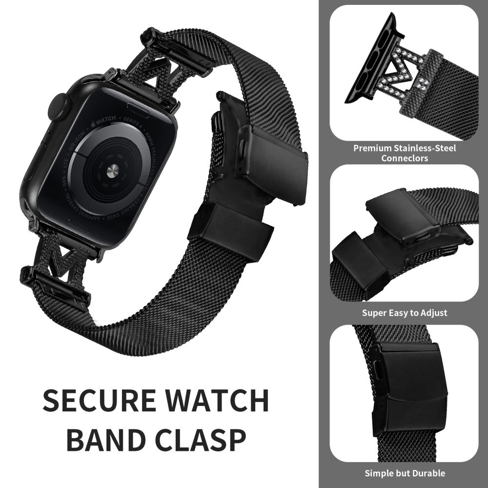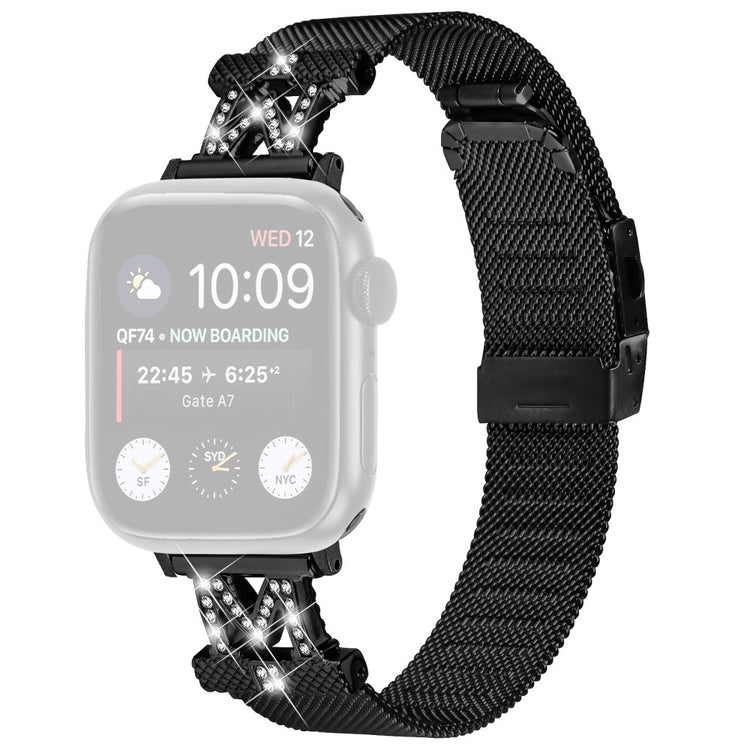 Overvej at købe dette Milanese rustfrit stålrem til din Apple Watch, da det tilbyder en række fordele. Først og fremmest er remmen lavet af højkvalitets rustfrit stål, hvilket sikrer, at den er både holdbar og af høj kvalitet. Den unikke rhinestone dekoration i M-form giver et smukt og moderne udseende, der kan pifte ethvert outfit op. Med en foldbar spænde kan størrelsen hurtigt justeres, så remmen sidder perfekt om dit håndled. Den ånder takket være det fine mesh design, hvilket forhindrer sved, og gør den ideel til daglig brug. Dette er en fantastisk mulighed for at erstatte din gamle eller beskadigede rem, samtidig med at den er nem at installere og fjerne. Vælg dette produkt for at give din Apple Watch et stilfuldt og funktionelt løft.