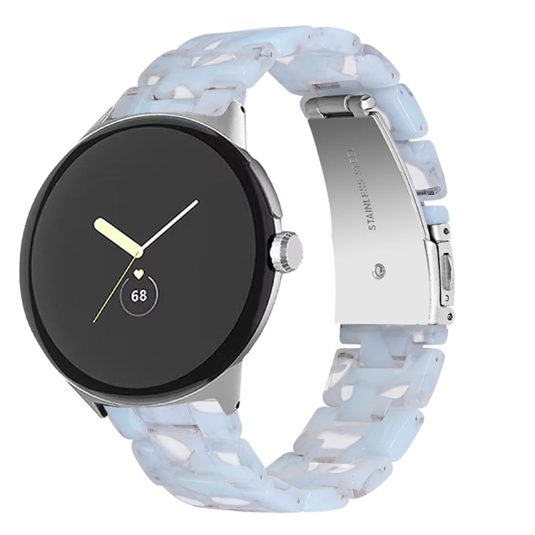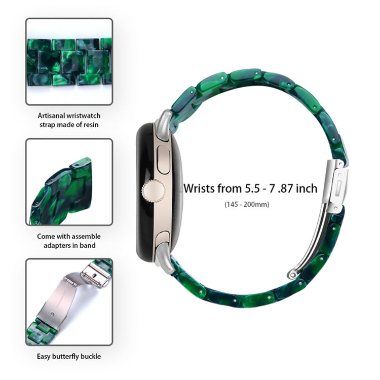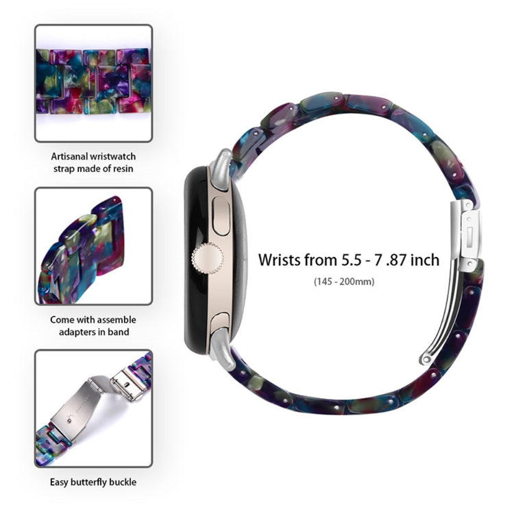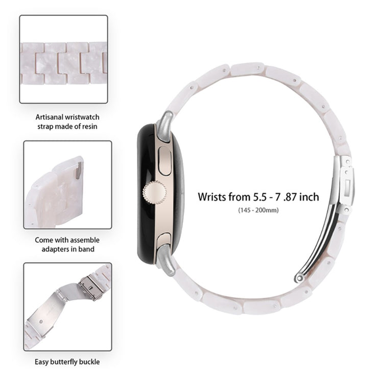 Dette armbånd er et fremragende valg for dem, der ønsker at tilføje et touch af elegance til deres Google Pixel Watch 2. Det er fremstillet af materialer af høj kvalitet, der gør det både vandsikkert og rustresistent, hvilket sikrer, at det holder sig flot i lang tid. Den håndpolerede overflade og det omhyggeligt udvalgte resin giver en exceptionel komfort og pasform for håndled med en størrelse mellem 5.5" og 7.87". Med et smart foldespænde med dobbelttryk-sikkerhedslås er det nemt at tage armbåndet af og på, samtidig med at det sikrer, at det sidder sikkert. Den tre-perler resinrem kombineret med et rustfrit stål-adapter tilføjer både styrke og stil. Dette armbånd er særlig velegnet til særlige begivenheder, møder, fester, rejser samt erhvervsmæssige og sociale sammenkomster. Gør dig klar til at imponere med dette stilfulde tilbehør!