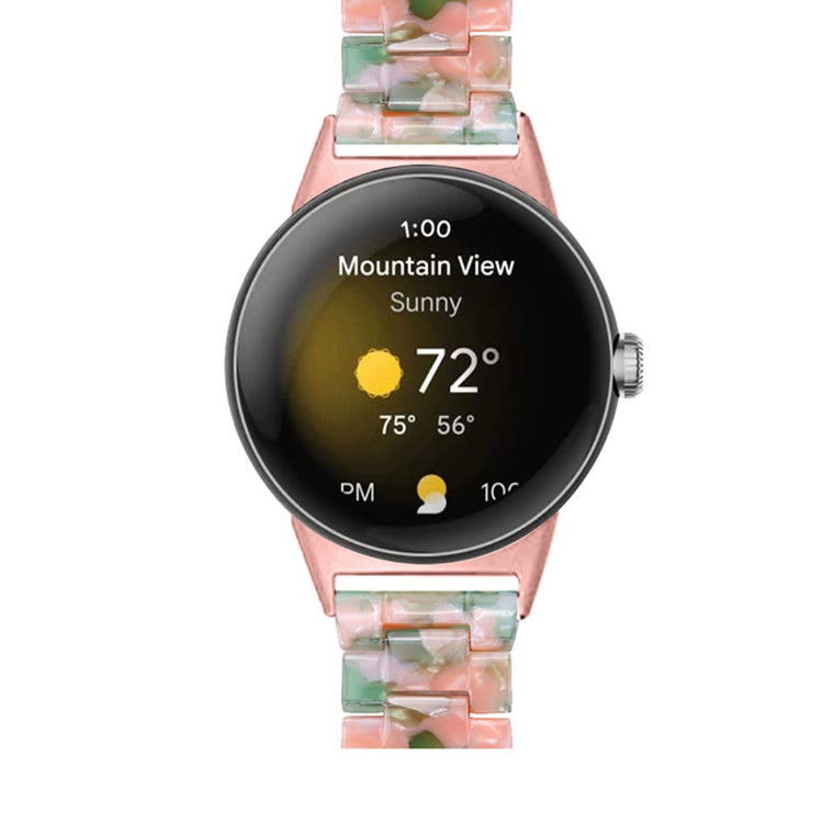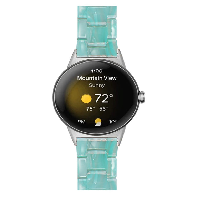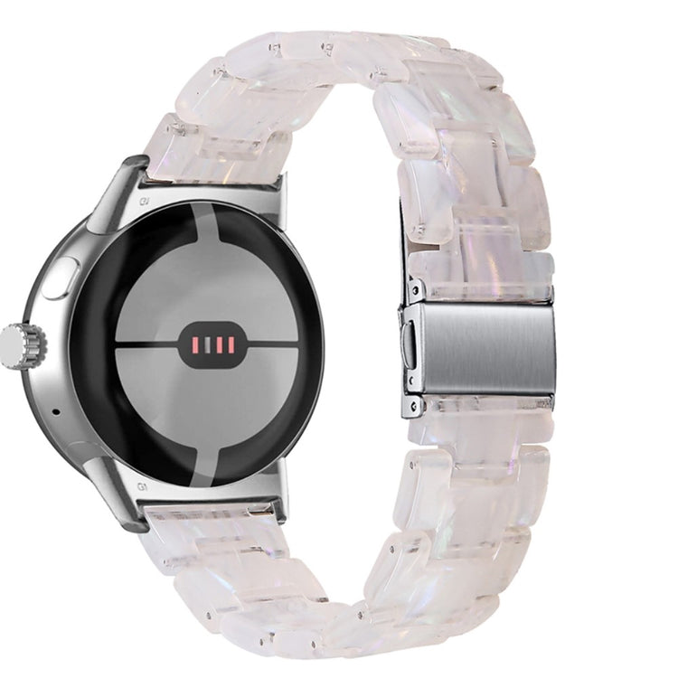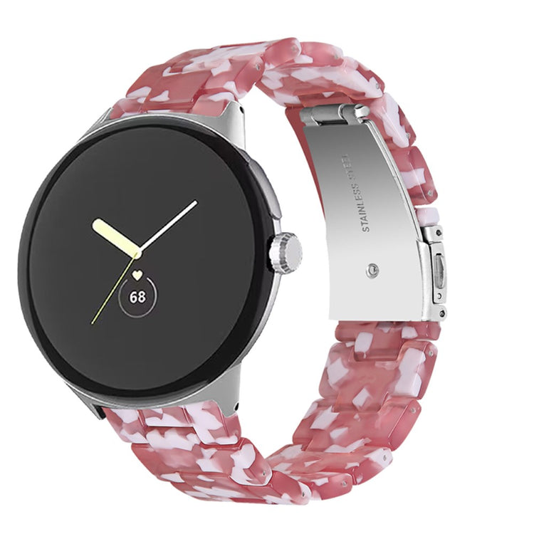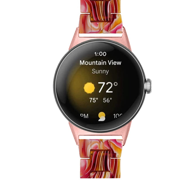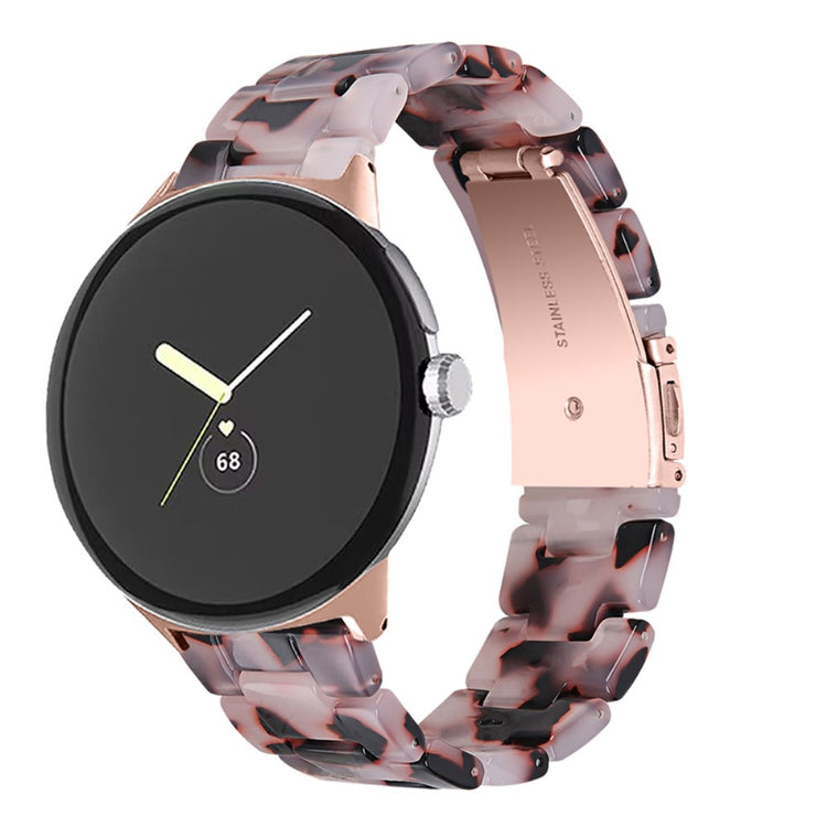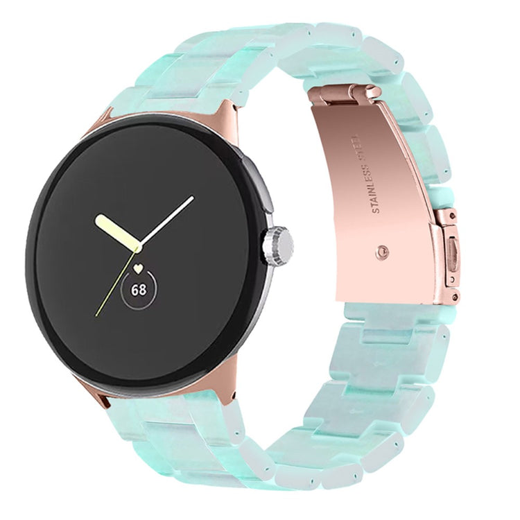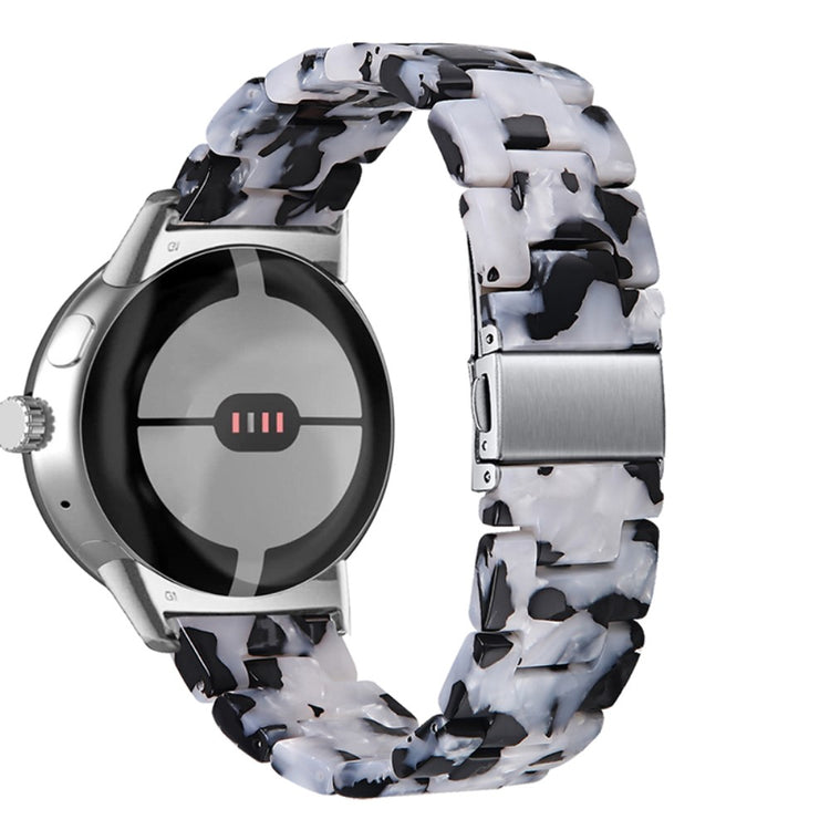 Der er mange gode grunde til at vælge dette armbånd til din Google Pixel Watch 2. Først og fremmest er det fremstillet af høj kvalitet resinmateriale, som er vand- og rustbestandigt, hvilket sikrer, at det holder sig pænt i lang tid, uanset om du er aktiv i hverdagen eller deltager i festlige begivenheder. Det håndpolerede design, udført af erfarne håndværkere, giver hvert stykke resin en unik finish, der skiller sig ud. Derudover gør det innovative design med en foldelås med dobbelt trykknapsikkerhed, at du kan tage det af og på med lethed og samtidig føle dig tryg. Det tre-perler resinarmbånd med rustfrit ståladapter og foldelås sikrer en perfekt pasform og gør det ideelt til forskellige anledninger, såsom møder, fester, rejser og forretningsbegivenheder. Uanset om det er til hverdag eller særlige lejligheder, vil dette armbånd tilføje et strejf af elegance til dit outfit. Med en passende håndledsomkreds på 5,5-7,87 tommer er det en alsidig tilføjelse til enhver kvindes smykke kollektion.