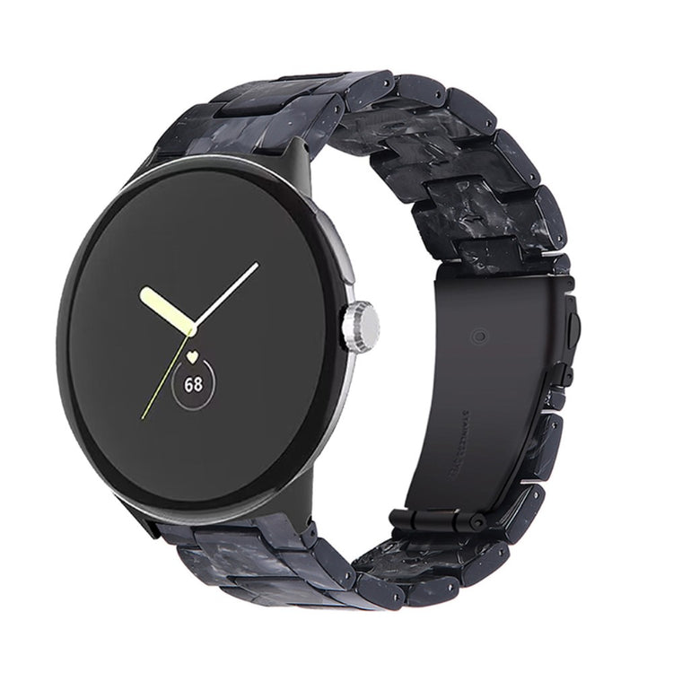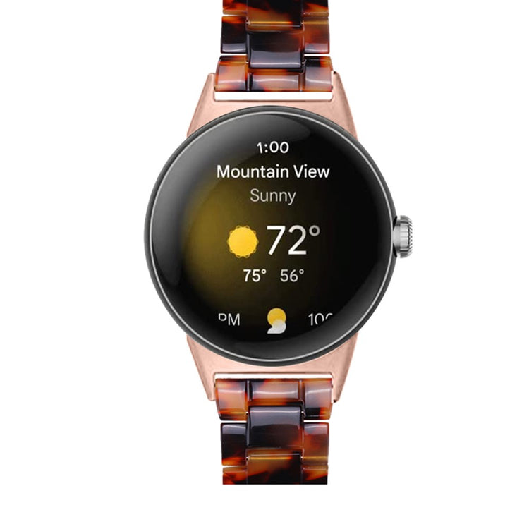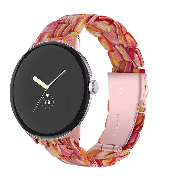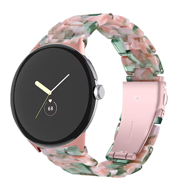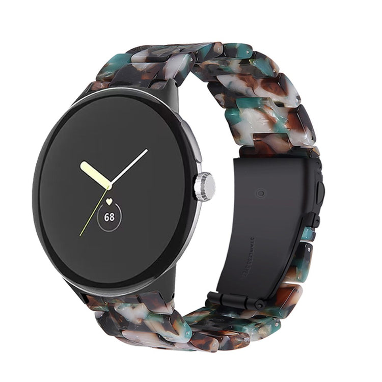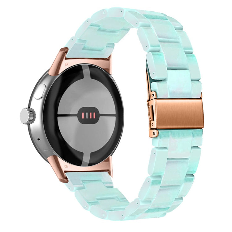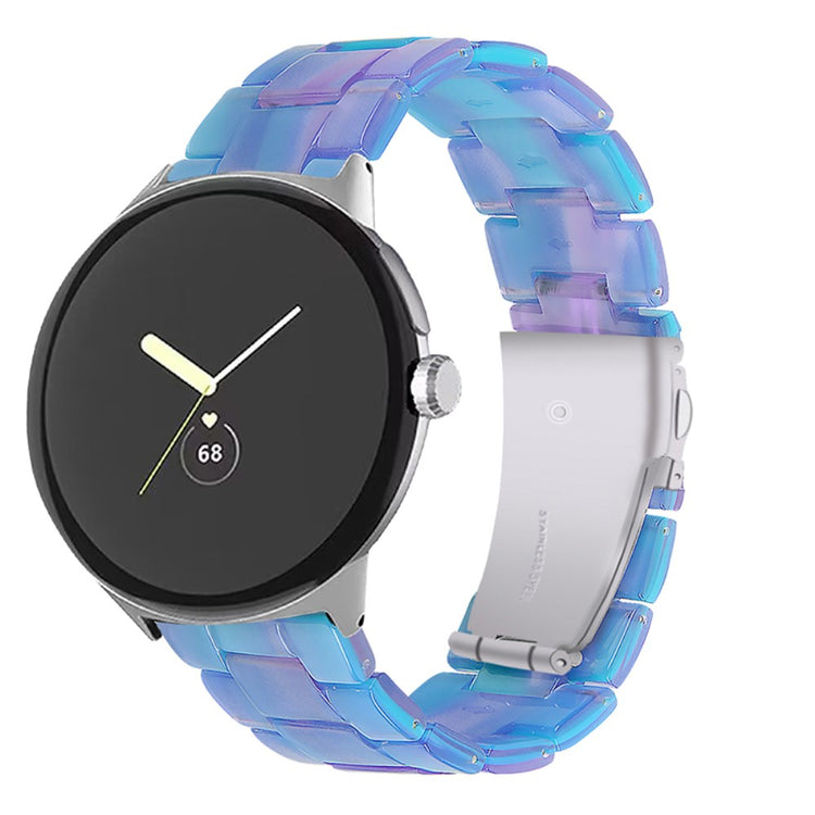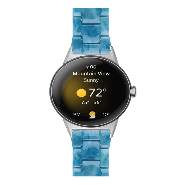 Der er mange gode grunde til at vælge dette armbånd til din Google Pixel Watch 2. Først og fremmest er det fremstillet af høj kvalitet resinmateriale, som er vand- og rustbestandigt, hvilket sikrer, at det holder sig pænt i lang tid, uanset om du er aktiv i hverdagen eller deltager i festlige begivenheder. Det håndpolerede design, udført af erfarne håndværkere, giver hvert stykke resin en unik finish, der skiller sig ud. Derudover gør det innovative design med en foldelås med dobbelt trykknapsikkerhed, at du kan tage det af og på med lethed og samtidig føle dig tryg. Det tre-perler resinarmbånd med rustfrit ståladapter og foldelås sikrer en perfekt pasform og gør det ideelt til forskellige anledninger, såsom møder, fester, rejser og forretningsbegivenheder. Uanset om det er til hverdag eller særlige lejligheder, vil dette armbånd tilføje et strejf af elegance til dit outfit. Med en passende håndledsomkreds på 5,5-7,87 tommer er det en alsidig tilføjelse til enhver kvindes smykke kollektion.