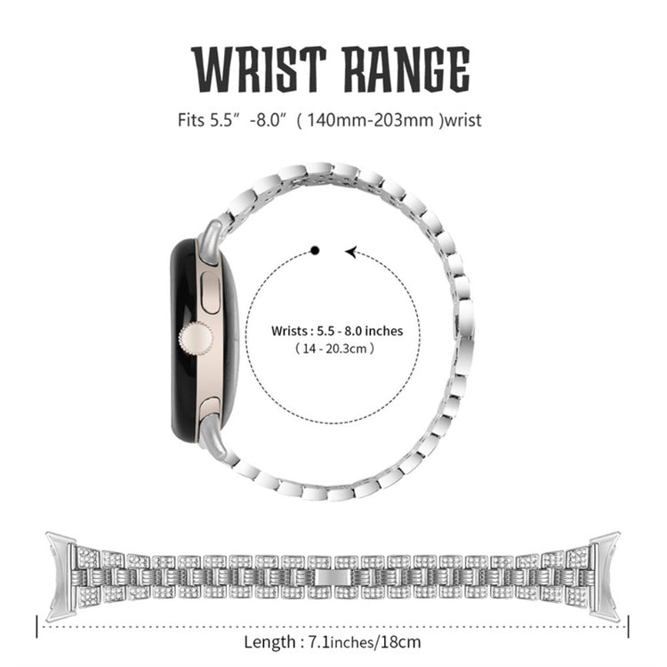 Hvis du overvejer at købe et smart watch-armbånd, bør du vælge dette Rhinestone Dekoreret Armur til Google Pixel Watch 2. Det er fremstillet af højkvalitets zink legering, som sikrer både holdbarhed og luksus. Det flotte design og den udmærkede håndværk gør dette armbånd til et stilfuldt valg til enhver lejlighed. Armbåndets unikke Rhinestone dekoration tilføjer et særligt præg, der skiller sig ud i mængden. Det er ideelt til frokoster, møder, fester, rejser og andre sociale arrangementer, og passer perfekt til både arbejde og fritid. Med en passende håndledsstørrelse og en behagelig pasform er det det oplagte valg for enhver, der ønsker at forbedre sit smart watch med stil.