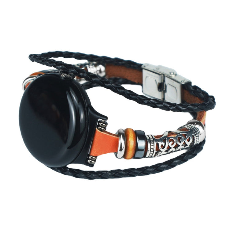 Google Pixel Watch / Pixel Watch 2 DIY Braided Leather Watch Strap Beads - Black#serie_1