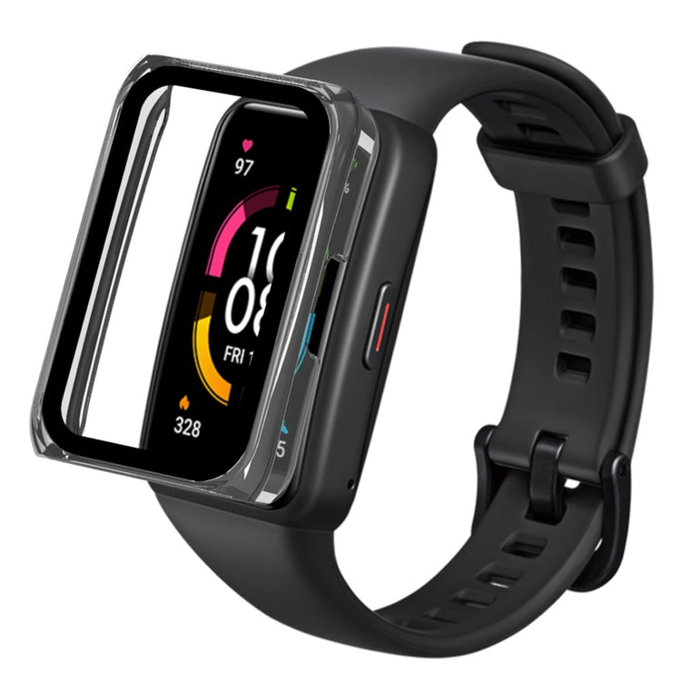 Dette stødabsorberende og faldsikre cover i hård plast er designet til at give din Huawei Band 7 / 6 / Band 6 Pro / Honor Band 6 optimal beskyttelse. Det indbyggede hærdede glasskærmbeskyttelse dækker både skærmen og kanterne og beskytter dit ur mod ridser, stød og utilsigtede fald.