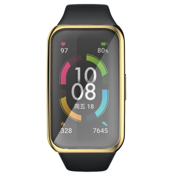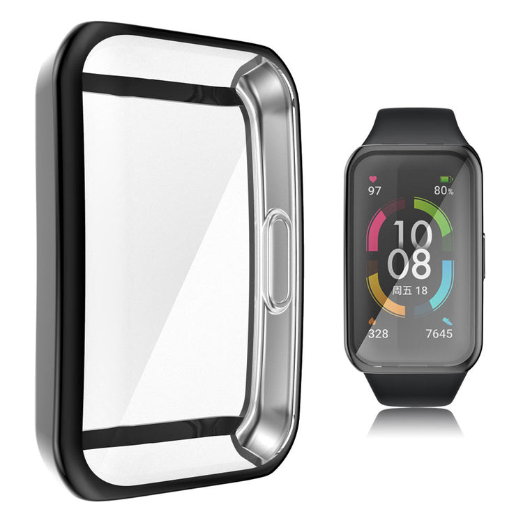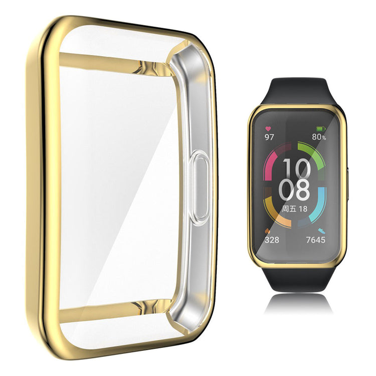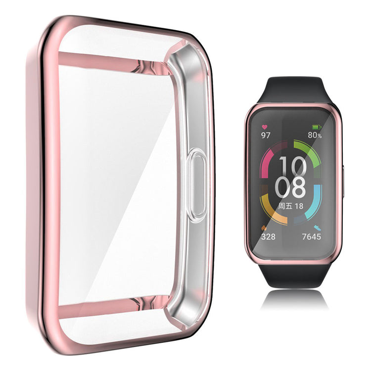 Dette produkt er et blødt og fleksibelt cover til din smartwatch, lavet af TPU-materiale med en elegant elektroplettering. Coveret er præcist skåret til for at passe perfekt til din Huawei Band 7 / 6 Pro / 6 / Honor Band 6, og beskytter den mod ridser og stød.