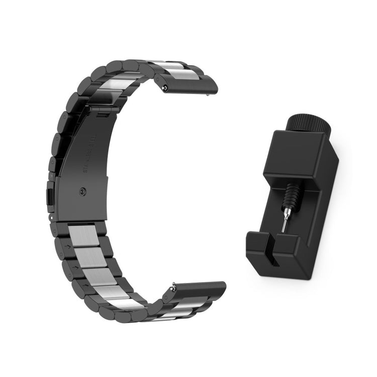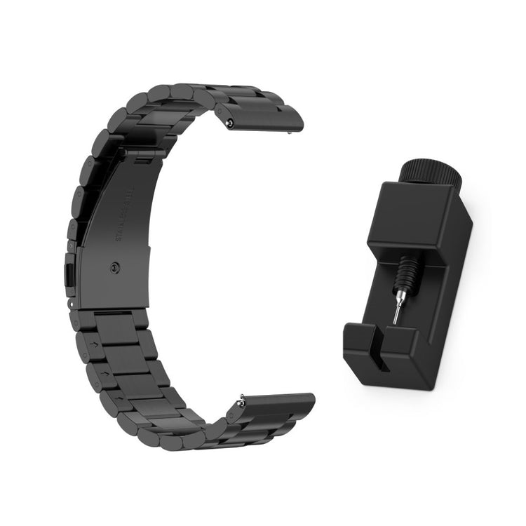 Denne 20 mm urrem i rustfrit stål er udsøgt og holdbar. Den passer perfekt til din Garmin Vivoactive, Samsung Watch Active, Huawei Watch 3 Pro New eller Watch 3 Pro.