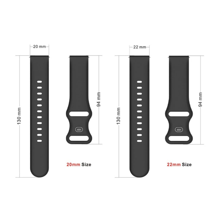 Justérbart håndledsrem i silikone på 20 mm til smartwatches som er vandafvisende, bløde og nemme at rengøre. Remmen har flere huller, så den kan tilpasses forskellige håndledsstørrelser og er en ideel erstatning for en gammel eller beskadiget rem. Den passer til mange modeller, herunder Samsung og Huawei smartwatches, samt Huami amazfit enheder.