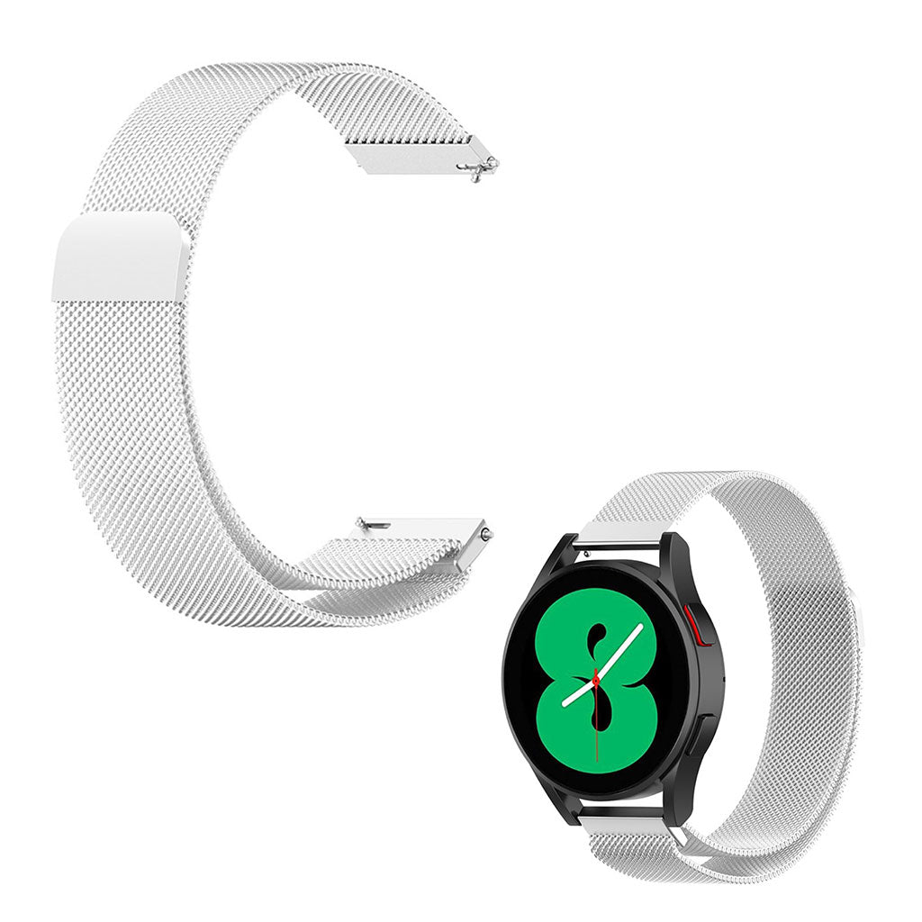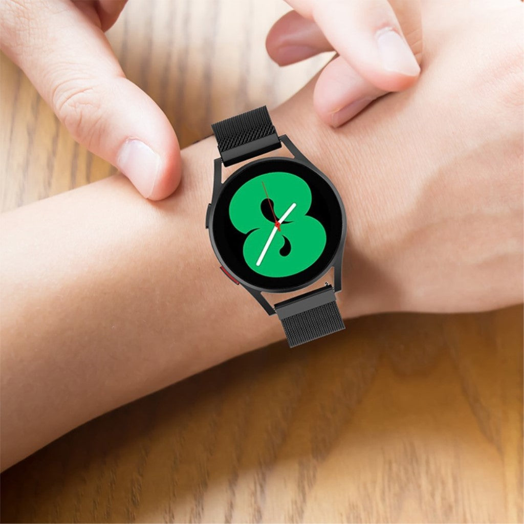 Denne udsøgte og holdbare urrem i førsteklasses rustfrit stål er perfekt til dit Samsung Galaxy Watch. Med et åndbart design i finmasket mesh undgår du sved, og den magnetiske lås gør det nemt at justere længden.