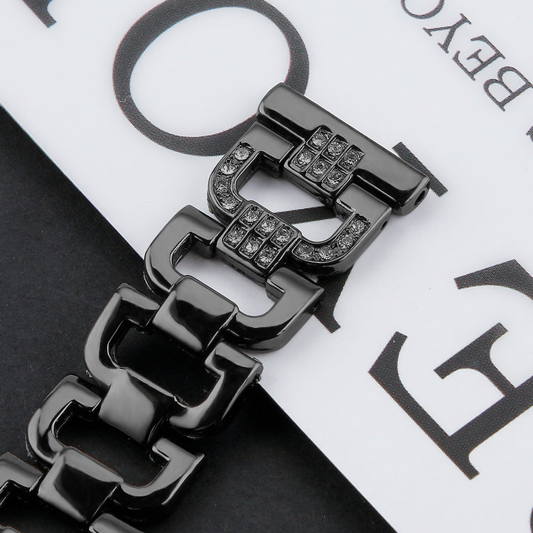 Dette armbånd i rustfrit stål med D-kæde design til smartwatch gør det mere elegant med glitrende rhinsten, der tilføjer et luksuriøst præg. Det ergonomisk design sikrer, at det er helt komfortabelt at have på, og låsen gør det nemt at tage på og af. Armbåndet passer til håndled med omkreds på 5,5-8,7 inches og er kompatibelt med flere smartwatches.