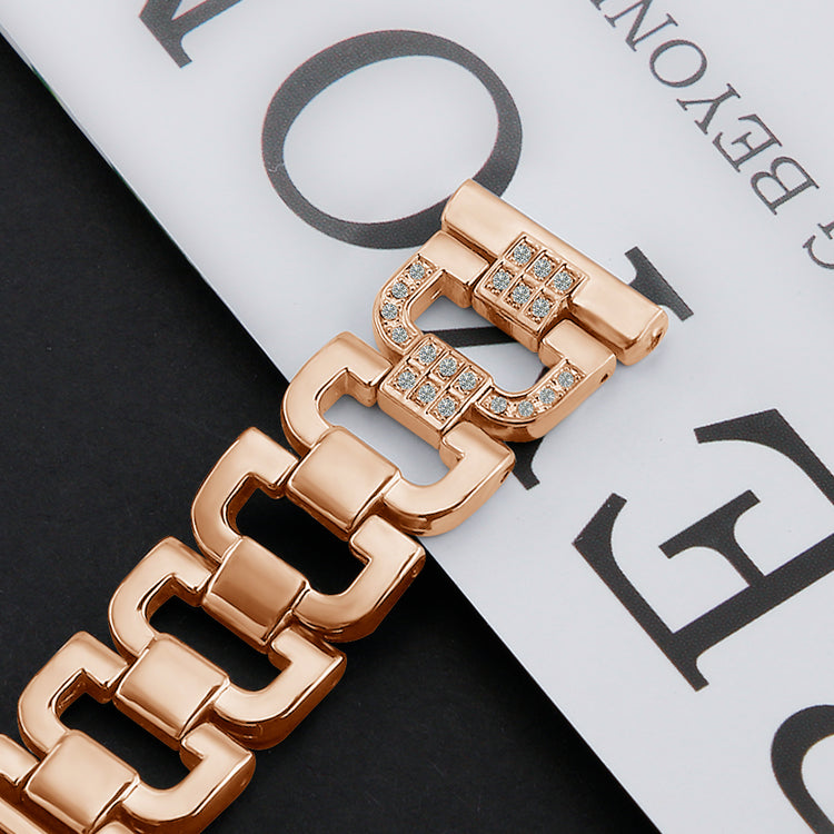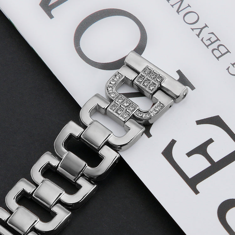 Denne 20 mm urrem i rustfrit stål er designet med en elegant D-kæde, der giver dit ur et smukt og stilfuldt look. De skinnende rhinsten tilføjer et strejf af luksus og glamour.