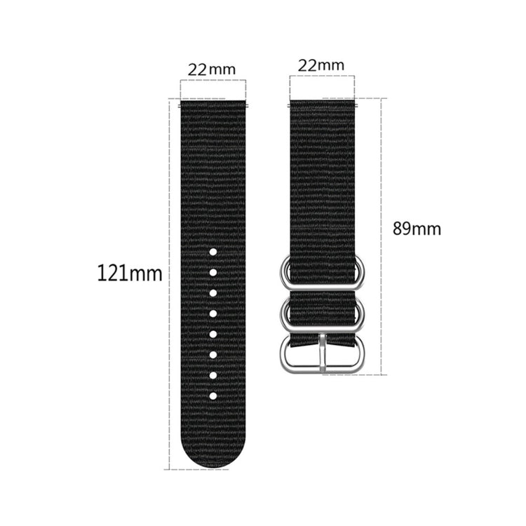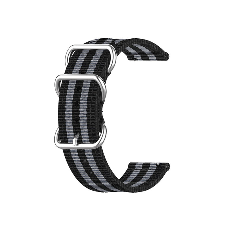 Denne stilfulde urrem er designet med 3 ringspænder, der giver et moderne og elegant look. Urremmen er fremstillet af høj kvalitet nylon, der er både elastisk og åndbart at have på.